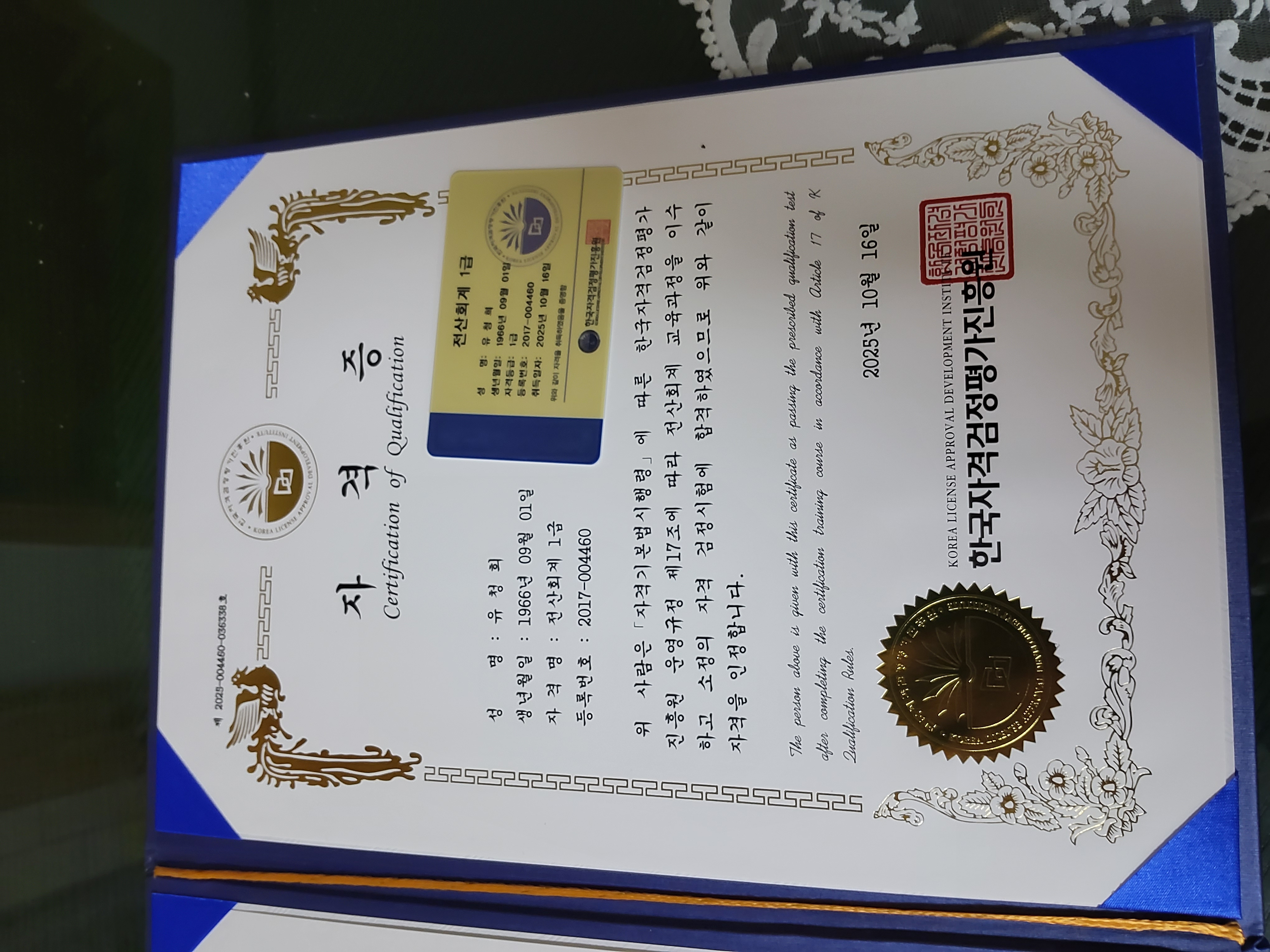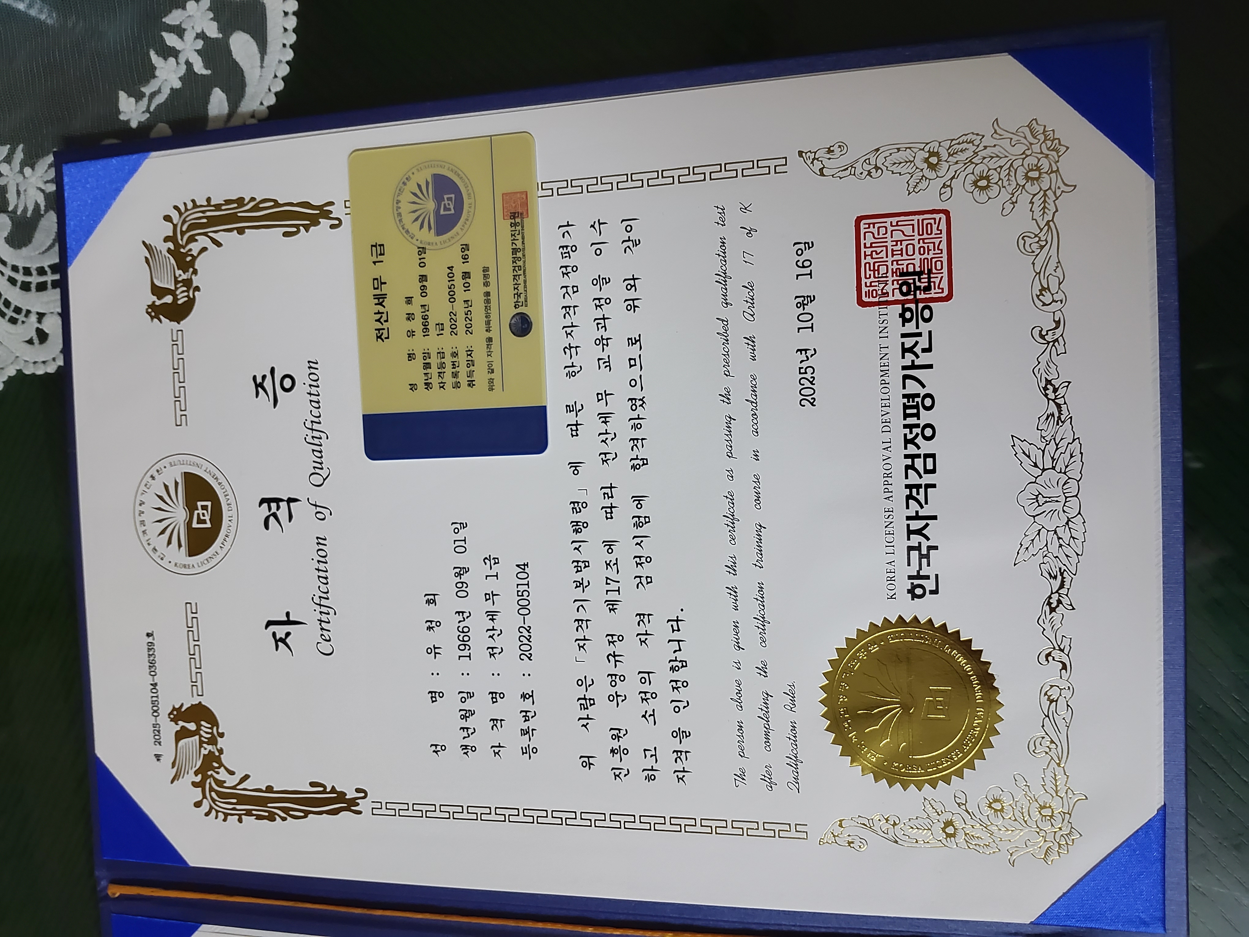 싱무도 하고 있고 해당 업무를 하고 있지만 자격증이 없어 늘 마음에 걸렸는데 이번에 자격증을 취득하게 되어 너무 좋습니다. 다른 자격증에도 도전하여 가급적 많은 저격증을 취득하고 싶습니다.