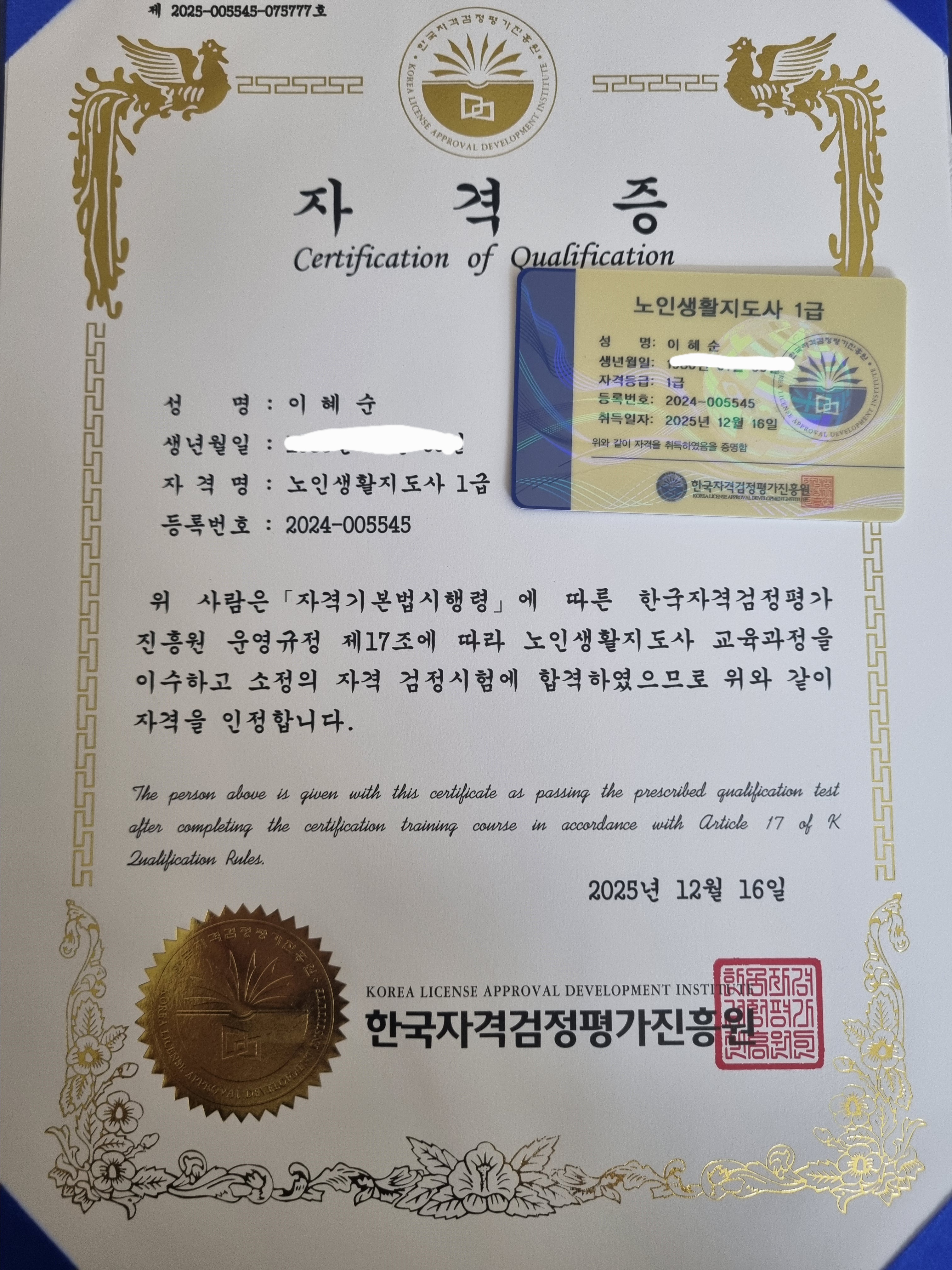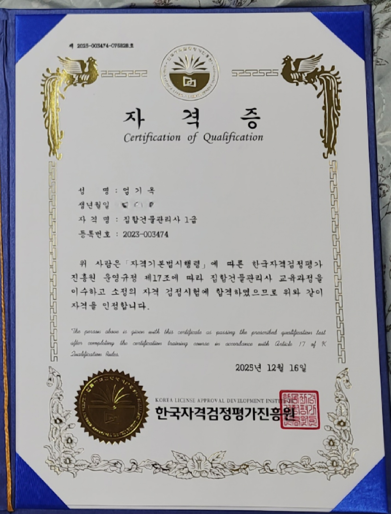 합격후기 작성 시 자격증을 받으신 사진을 같이 첨부해주셔야 합니다.