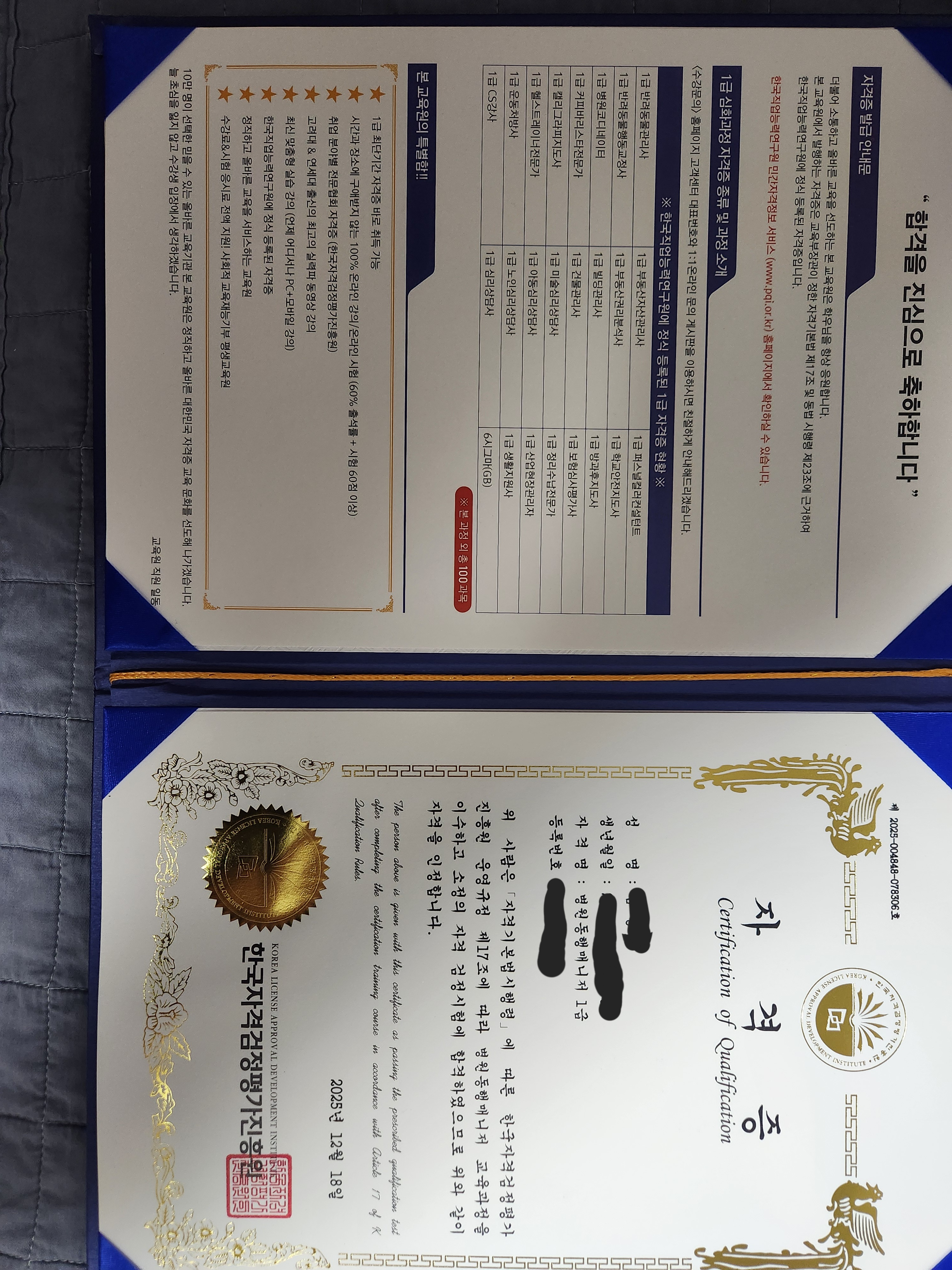 자격증이 도착했어요~