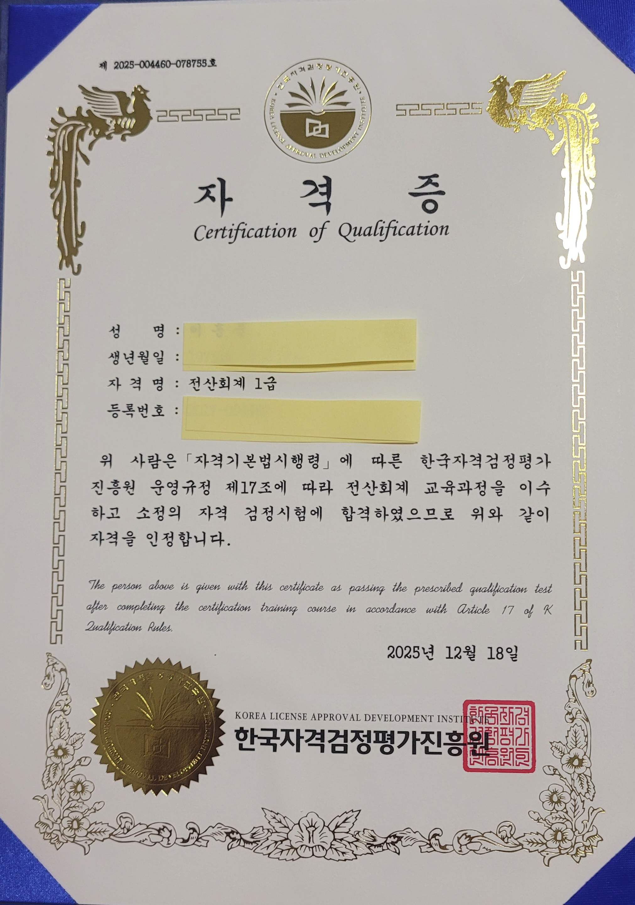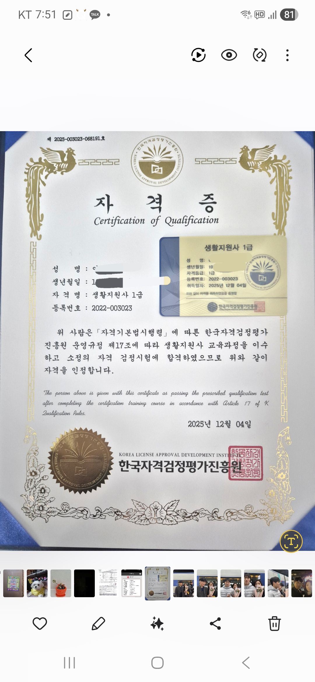 소중한 자격증 취득2