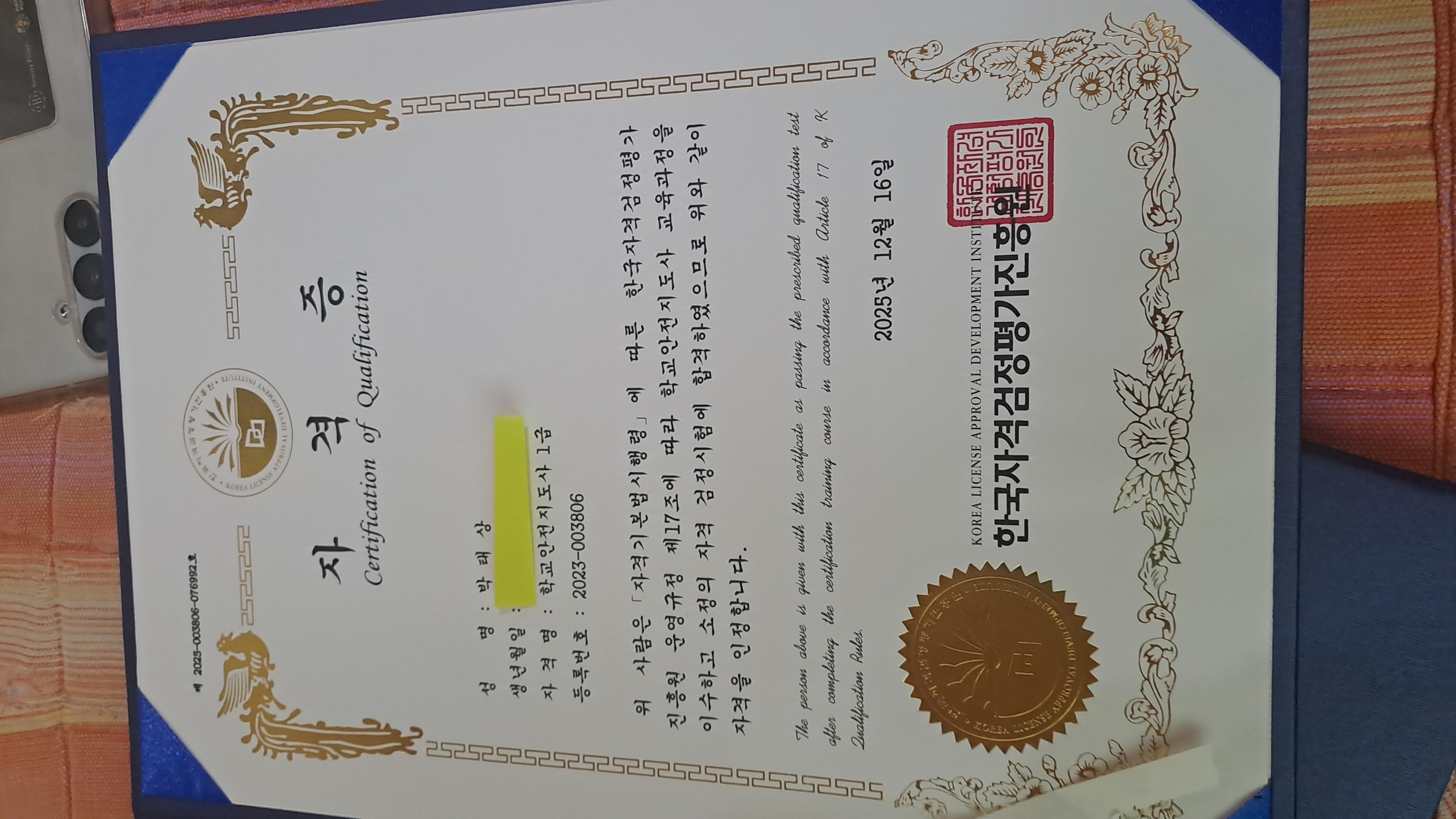 멋진 자격증을 따냈습니다.