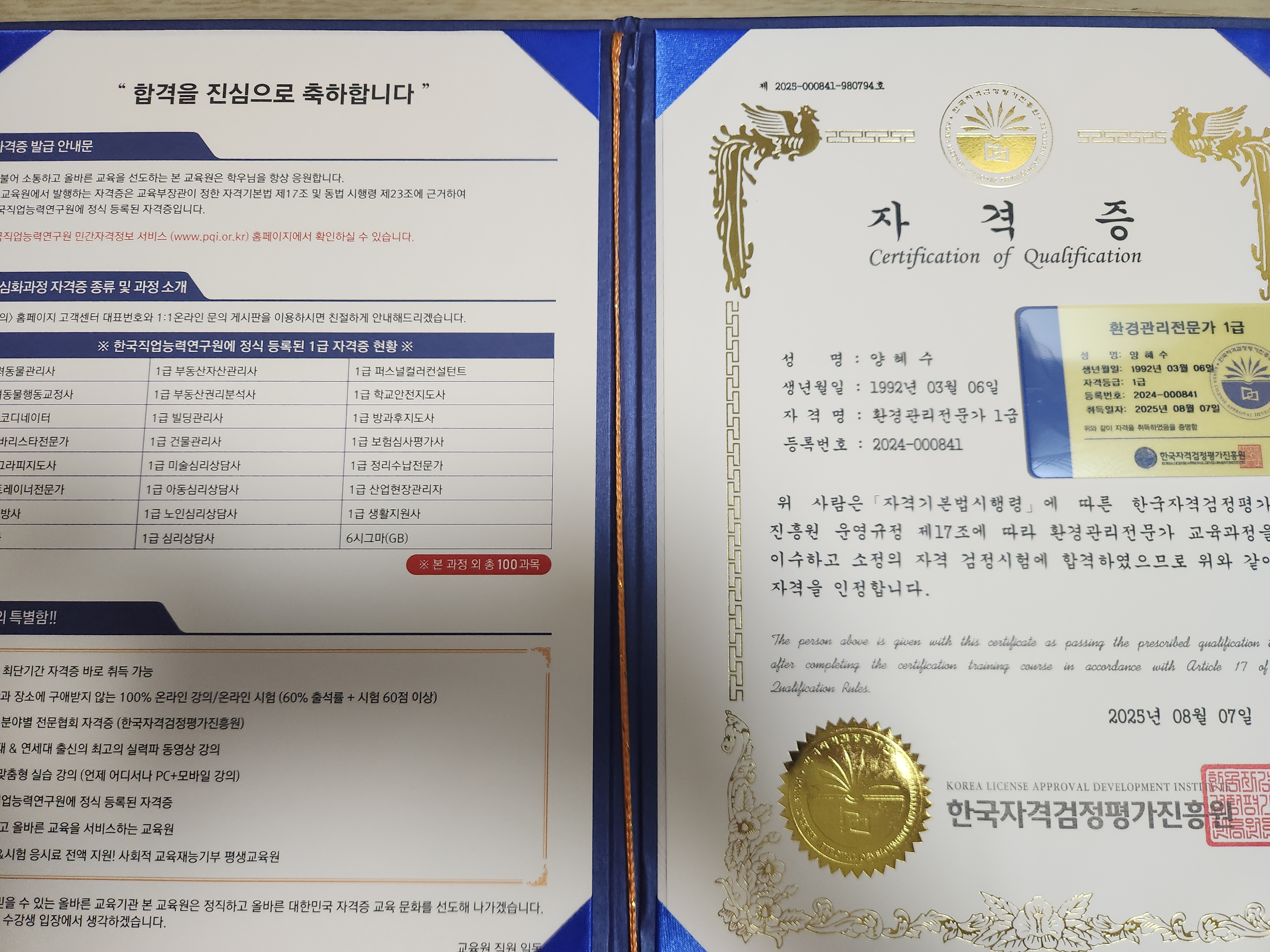 환경관련 자격증이 필요해서 알아보다 발견하여 도전에 성공!