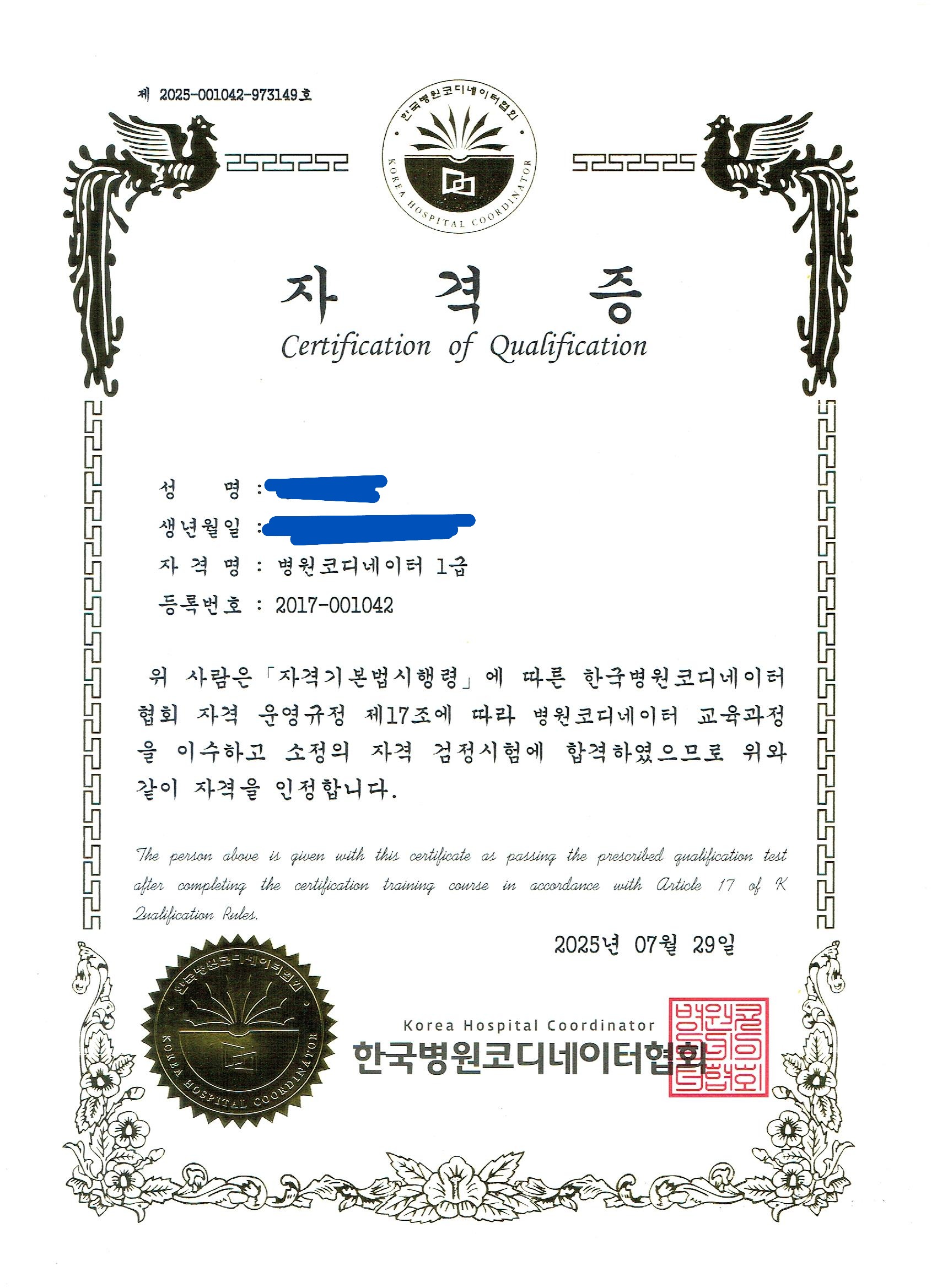 이전에 타기관통해 취득했던 병원코디네이터 자격증은 일정 기간마다 보수교육을 듣고 갱신을 해야했기에 그 기간을 놓쳐 말소되어서 다시 취득하기 위해 알아보던 중 알게되어 한번 시도했는데 정말로 쉽게 배우고 빠르게 취득할 수 있어 만족스럽습니다.