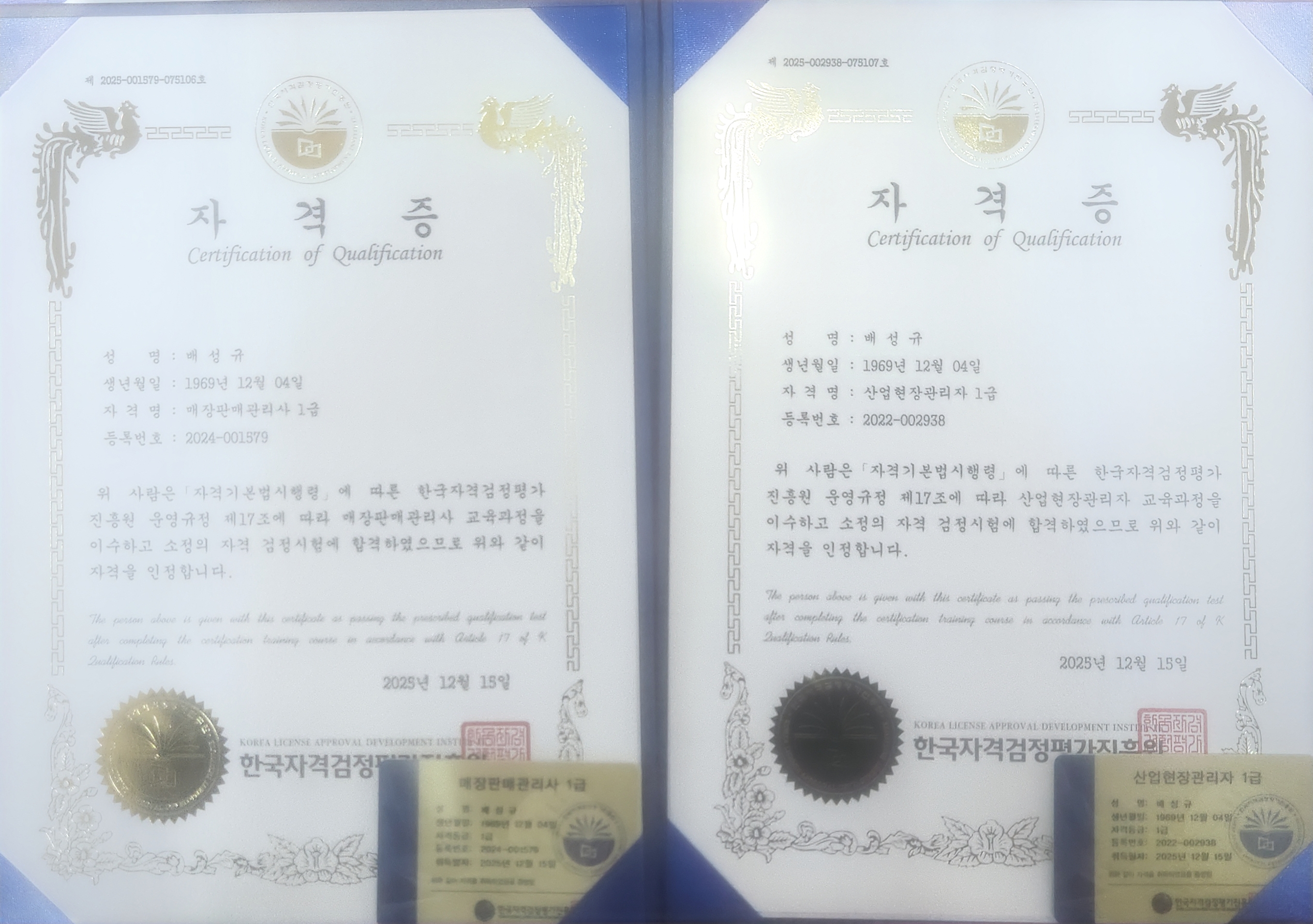 산업현장관리사1급 매장판매관리사1급 합격