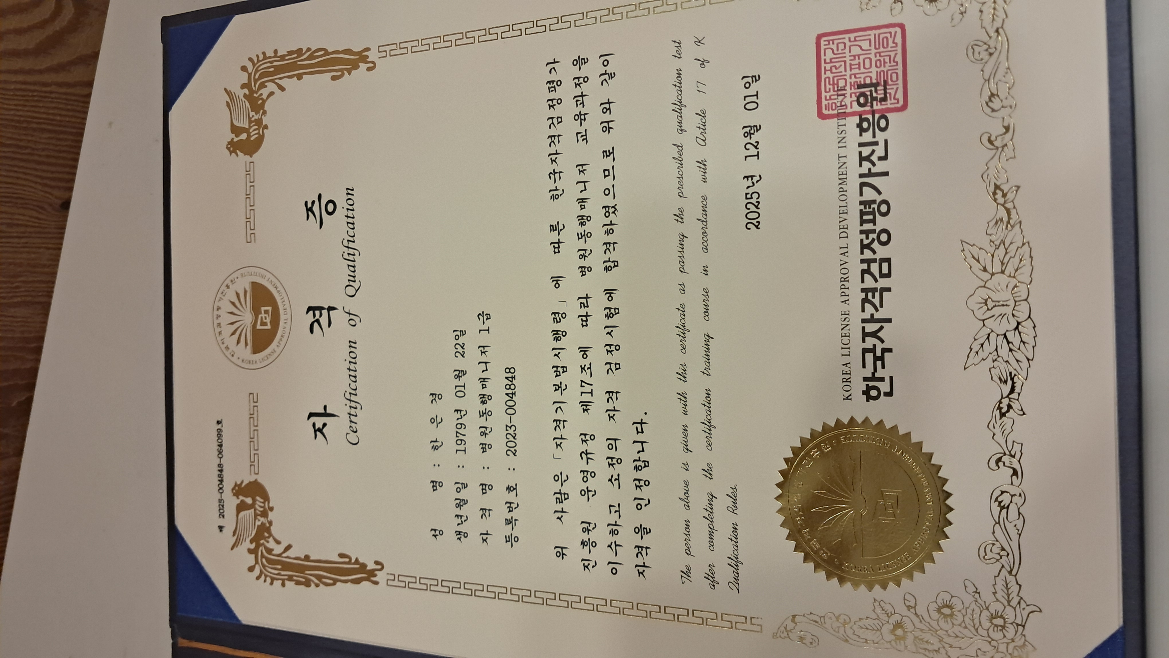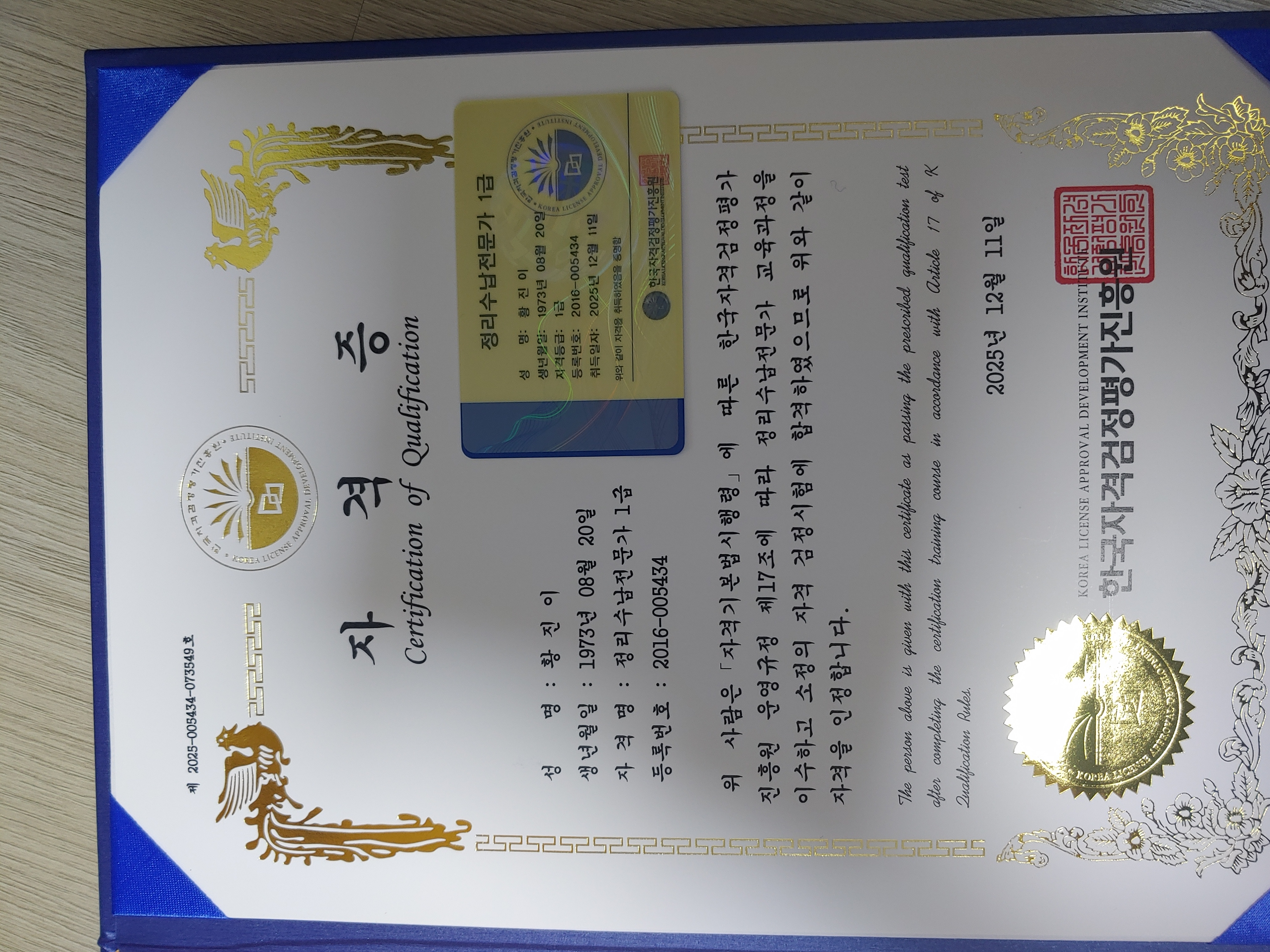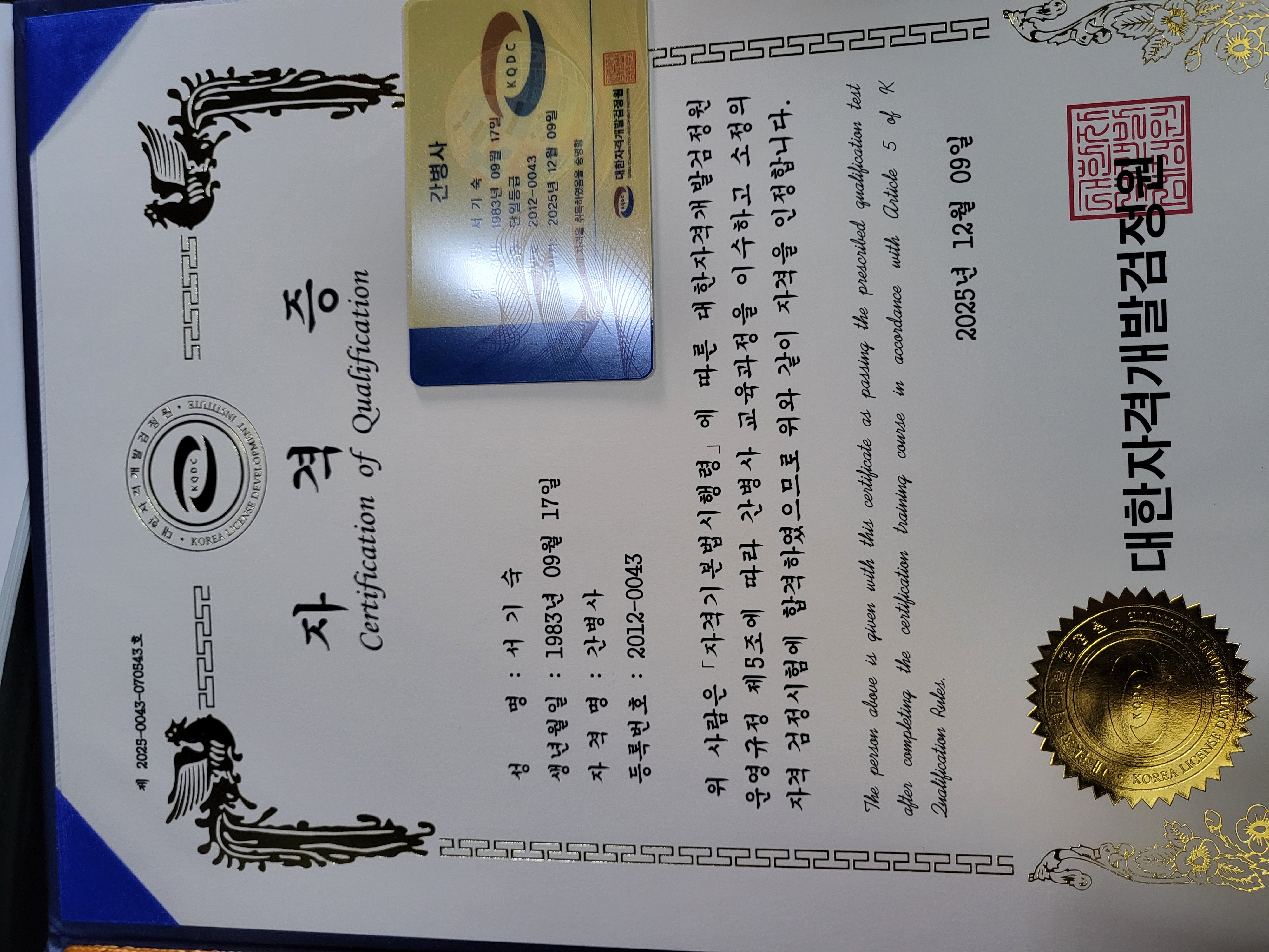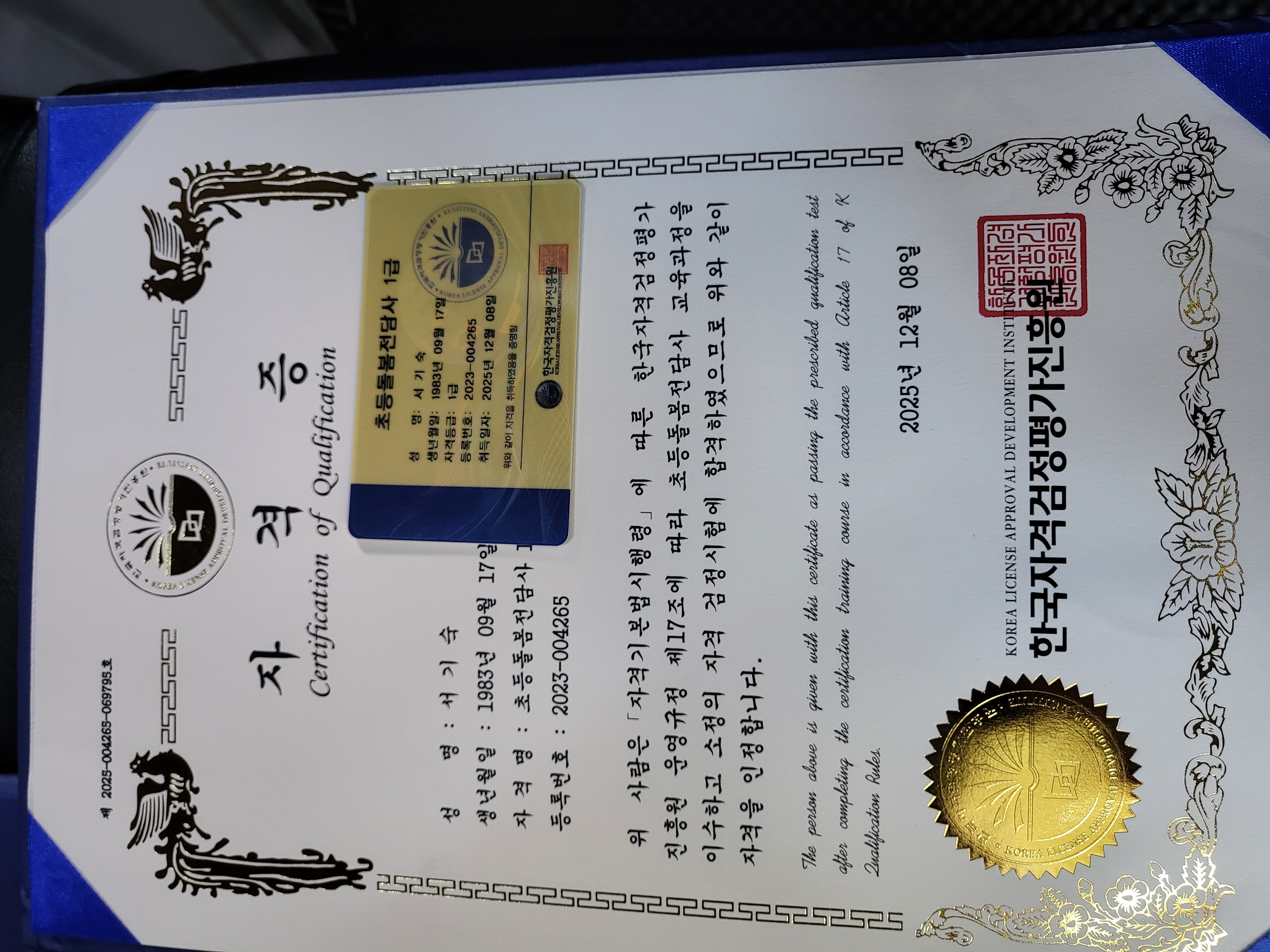 자격증 받았습니다