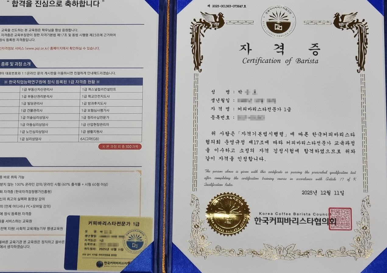 커피바리스타전문가 1급