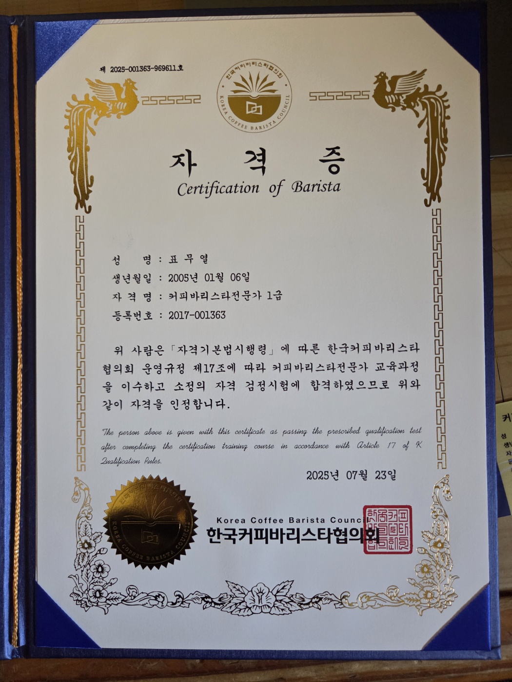 카페 알바하고 주 5일이라 쉴 수 있는 날이 토 일 뿐이라 커피바리스타 자격증을 어떻게 따야하나 하다가 한국자격증협회가 광고로 떠서 들어가보니 딸 수 있어서 실기는 이미 알바로 했기때문에 실기 했다 생각하고 땄어요!!!!! 기분이 너무 좋습니다