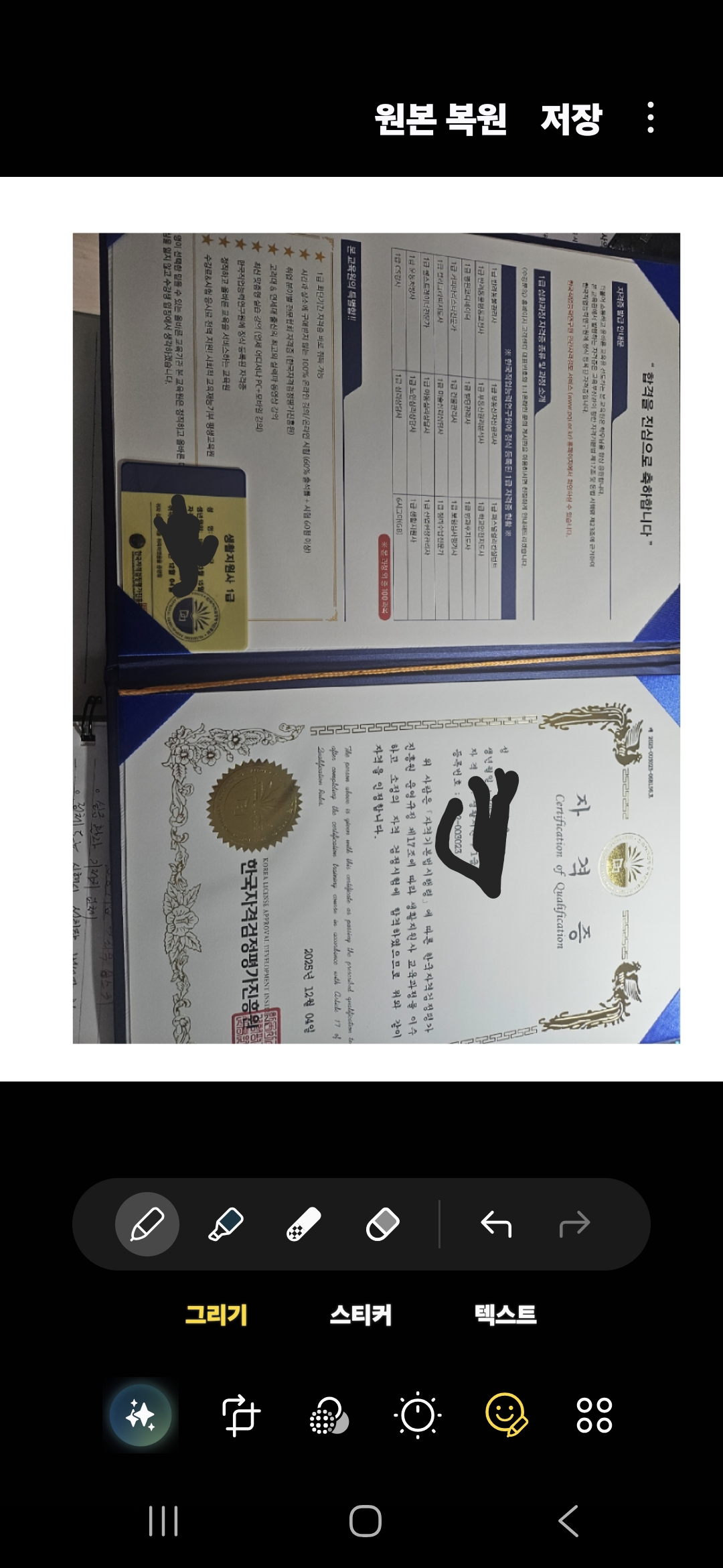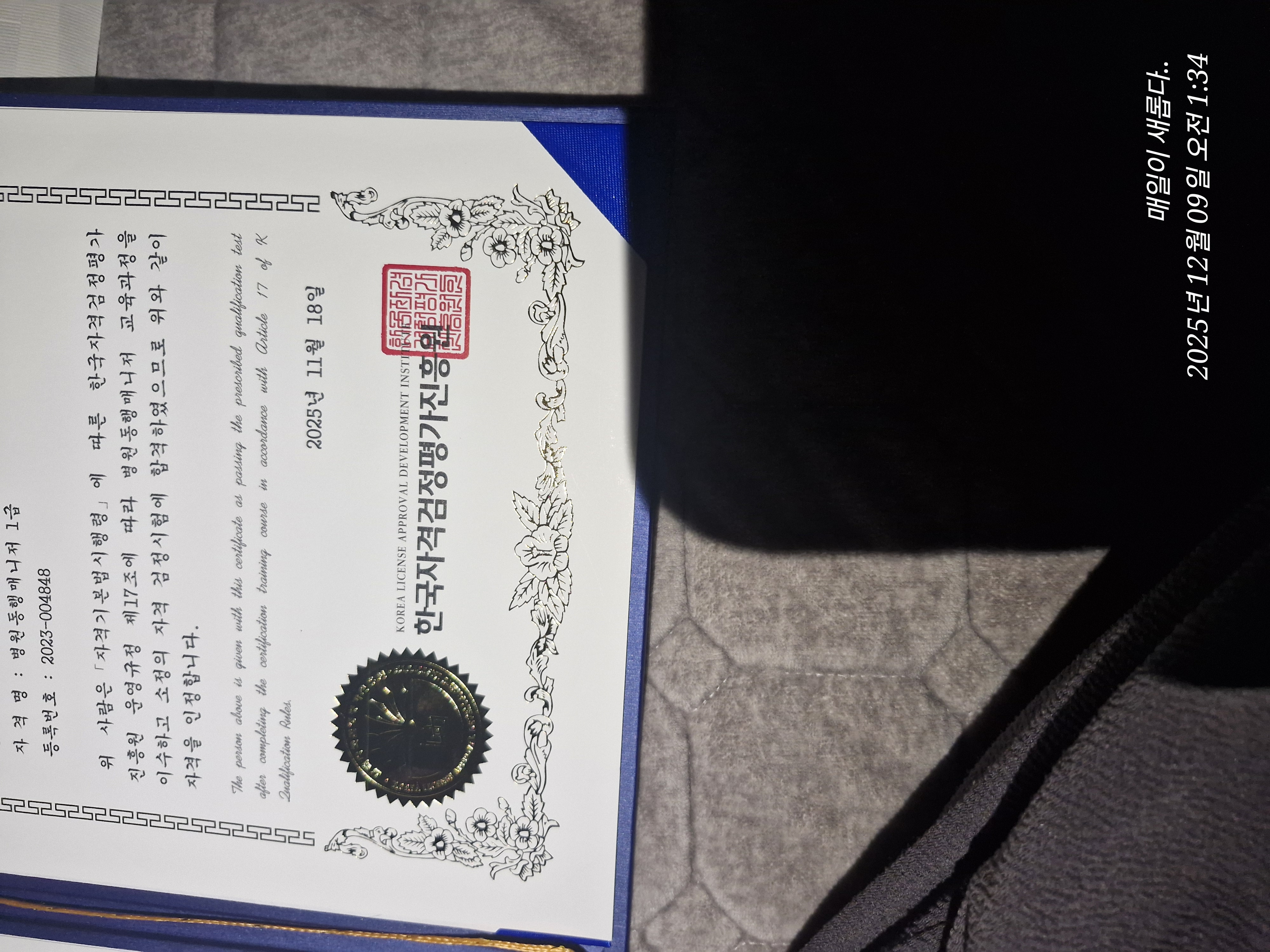 합격후기 작성 시 자격증을 받으신 사진을 같이 첨부해주셔야 합니다.