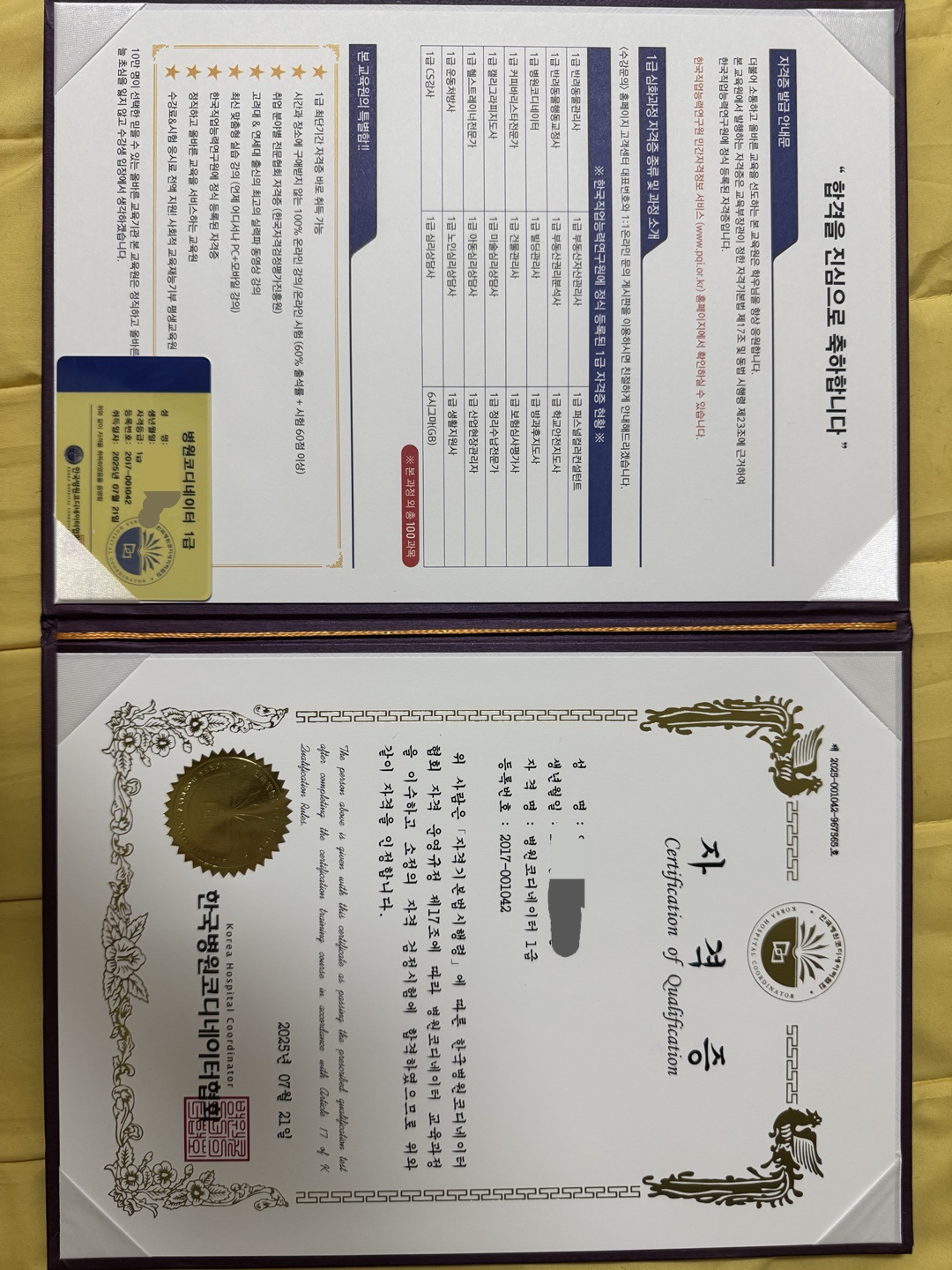 코디테이터1급자격증딴후. 전문비서1급도따게되었어요 ~병원코디네이터자격증은 그전부터 따고싶었는대 갈시간이없었는대..우연히 sns에서 인터넷으로 자격증을딸수있다기에알게되었는대 딸수는과목들도많고 막상강의듣게되니까 다른것들도 따고싶다는생각이들어서 욕심이 생기더라구요 그래서 요즘 다른것들도 따려고 시간나는대로 짬짬이 강의들으며따고있고 벌써 두번쨰자격증 취득했답니다 ~~