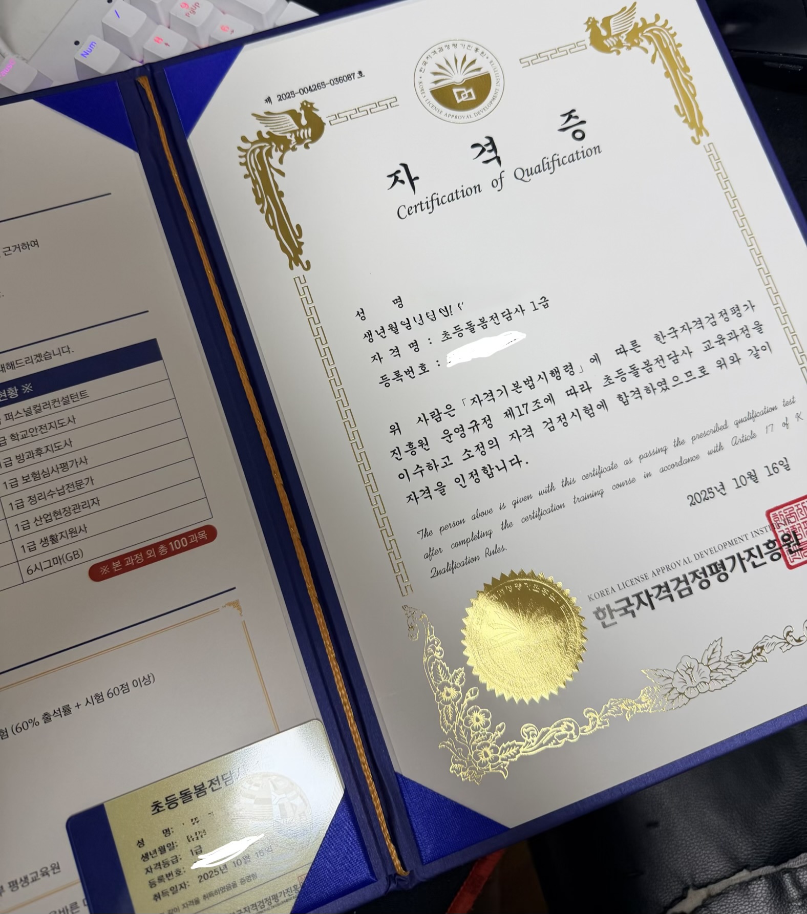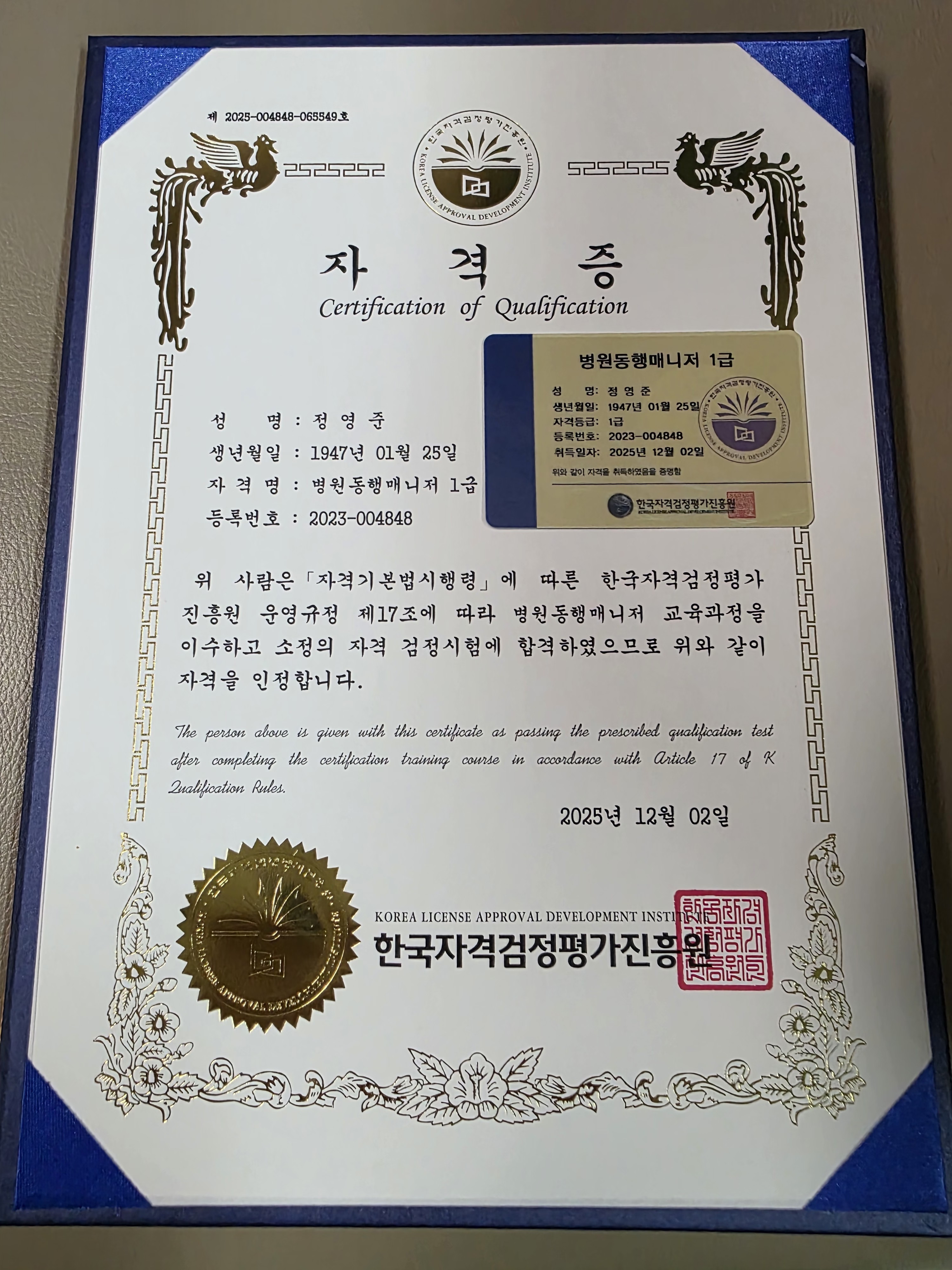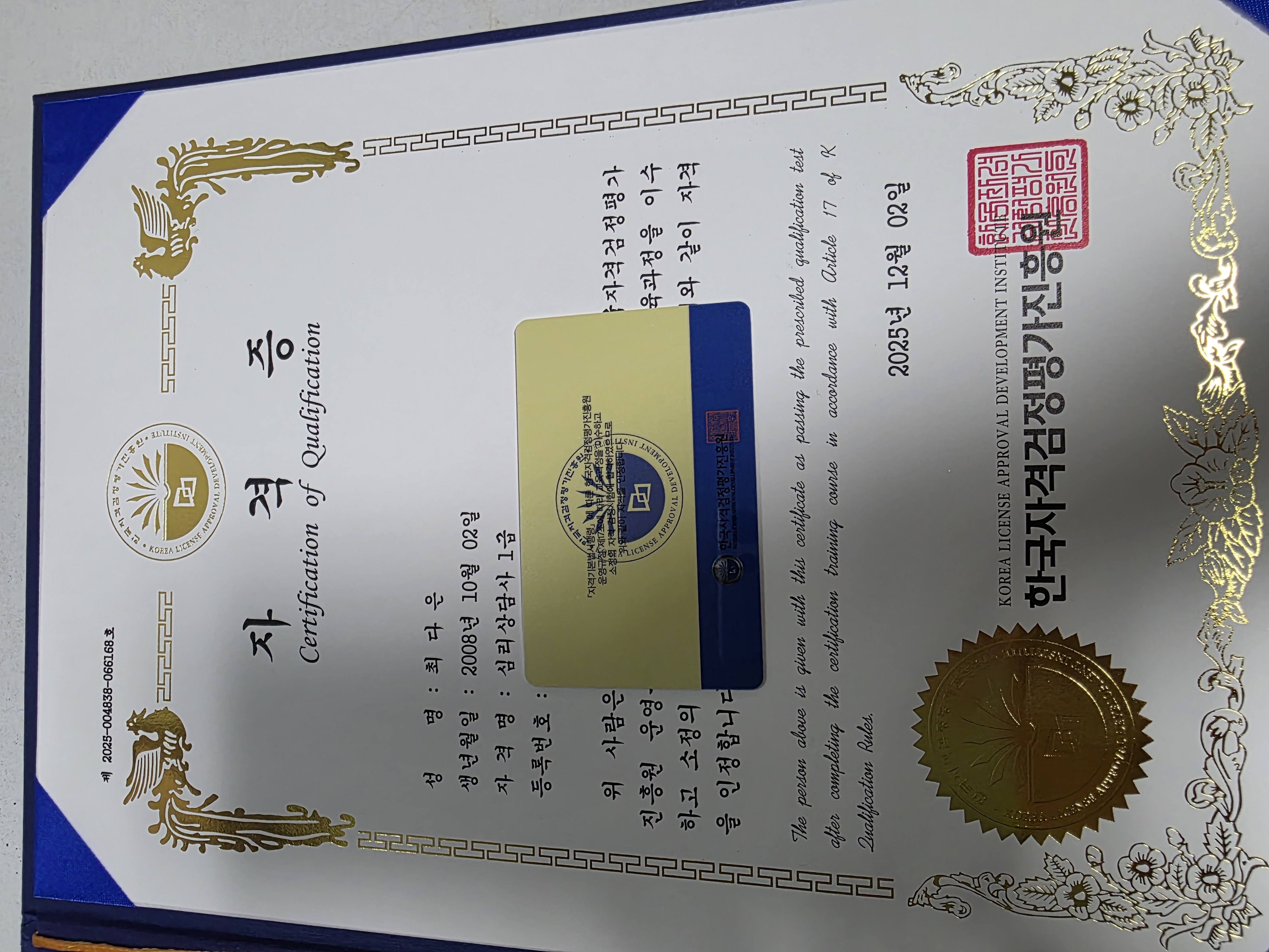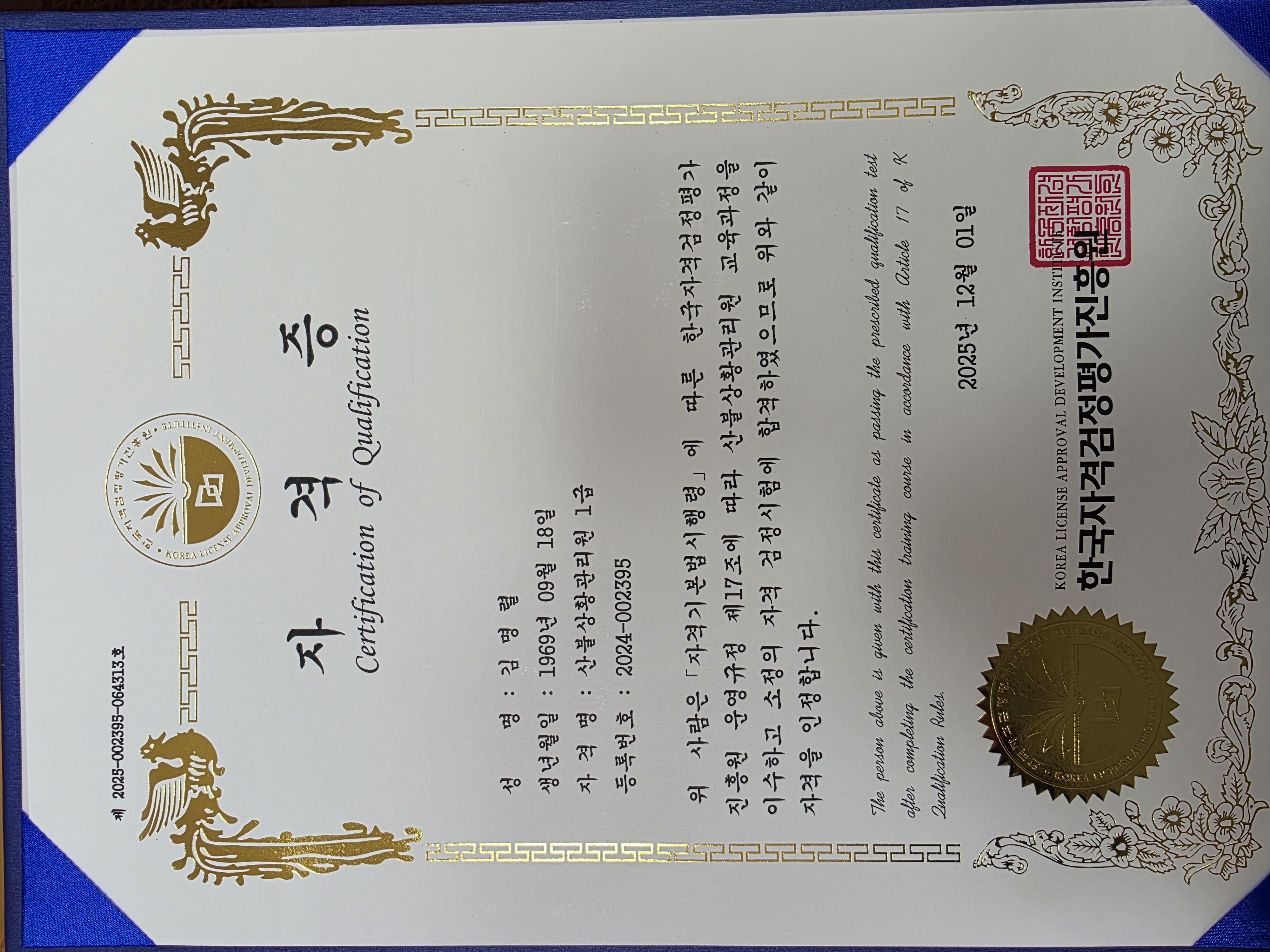 자격증 받았습니다