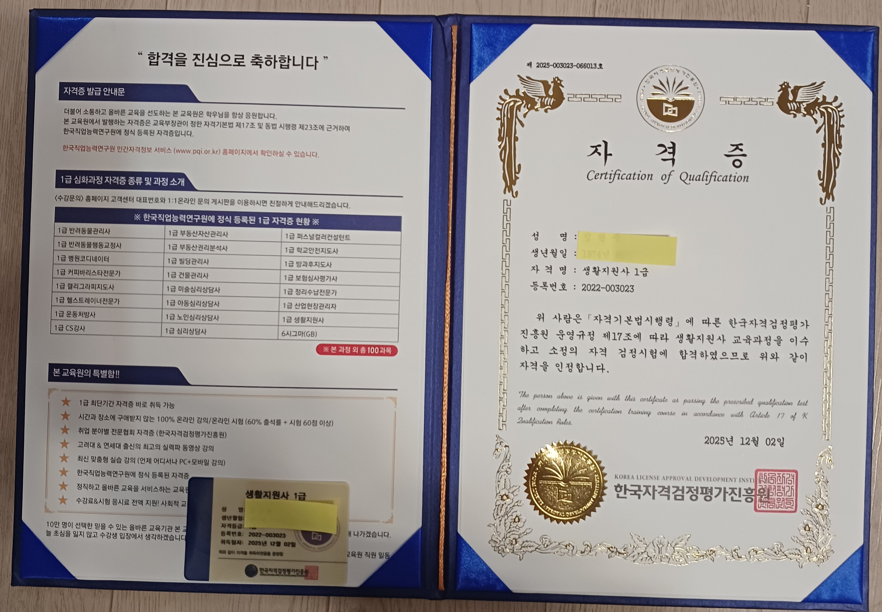 사회복지사 자격증을 따고 실질적인 간병에대해서도 관심을 가지고 있다가 이렇게 이론공부를 하고 자격증을 딸수있어서 너무 기쁩니다 자격증을 잘 활용할수있었으면 좋겠어요