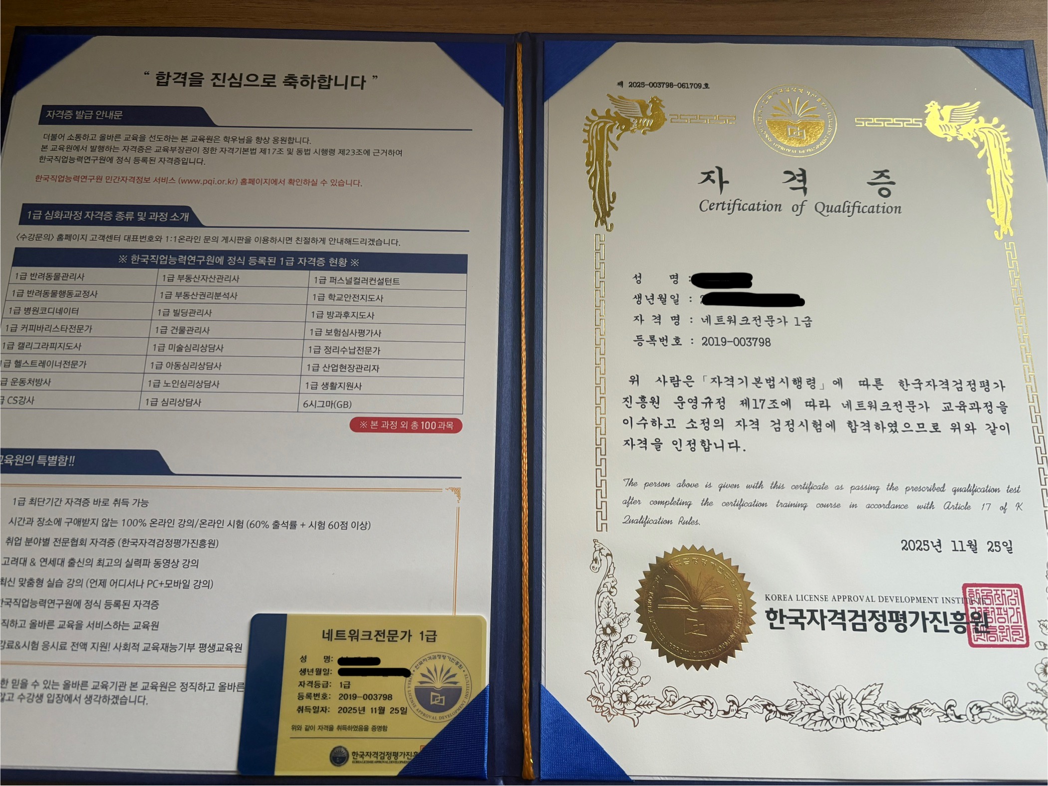 다른 일을 해보고 싶다는 생각에 도전했고 어렵지 않게 자격증 획득했습니다. 새로운 문이 하나 더 열린듯한 기분이네요.