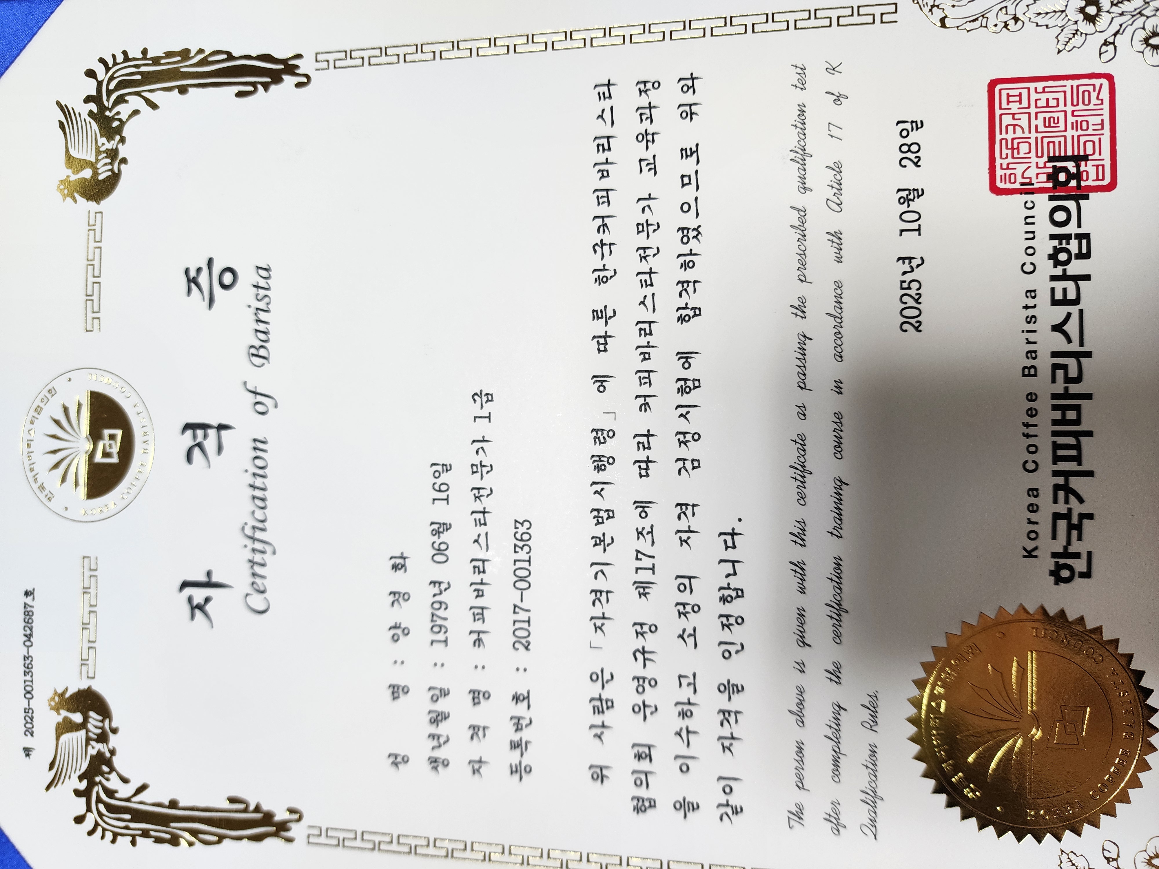 커피바리스타전문가 1급