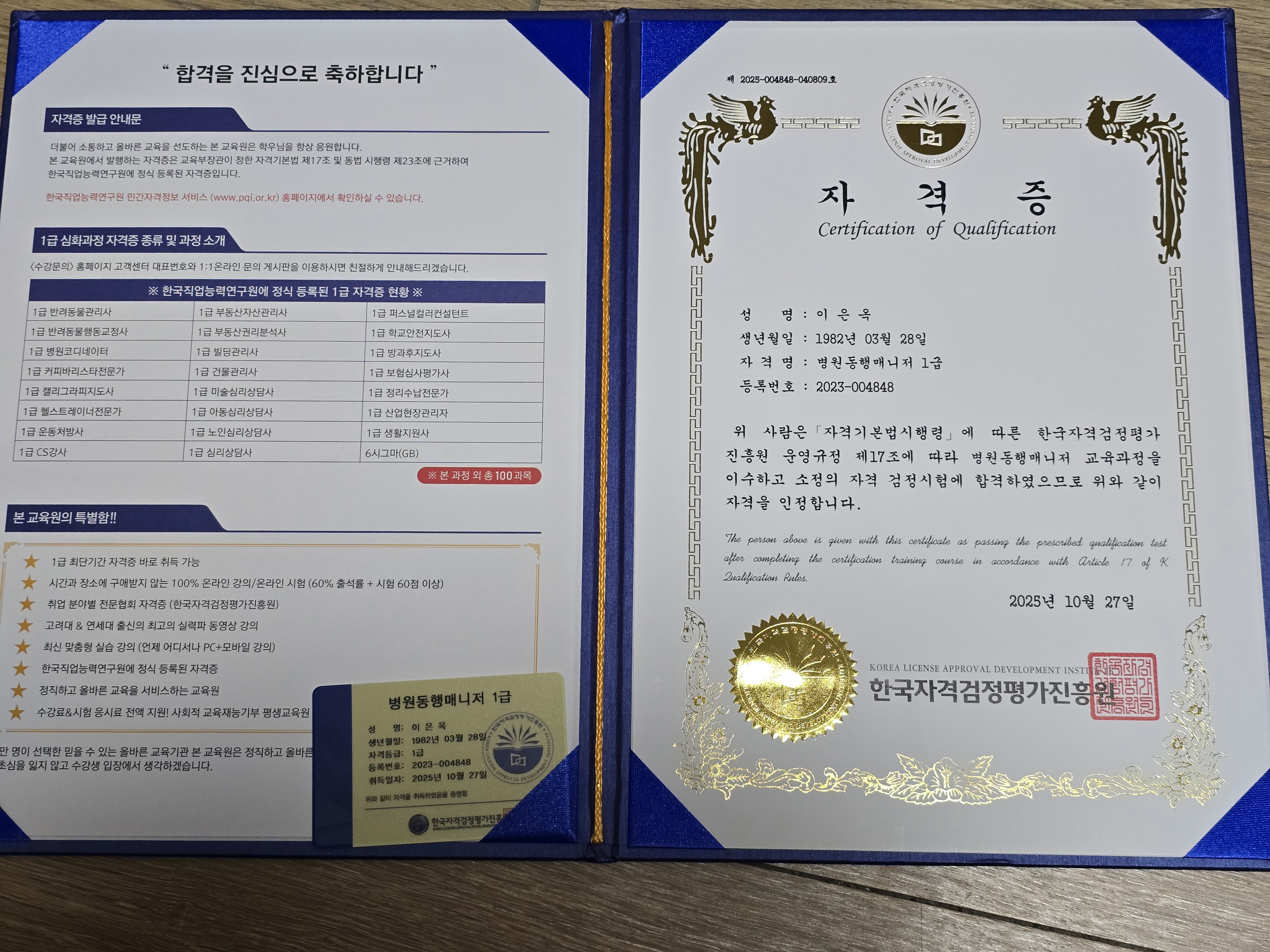 한국자격증협회를 알게되서 이렇게 자격증을 따서 너무 기쁘고 좋아요. 감사해요.