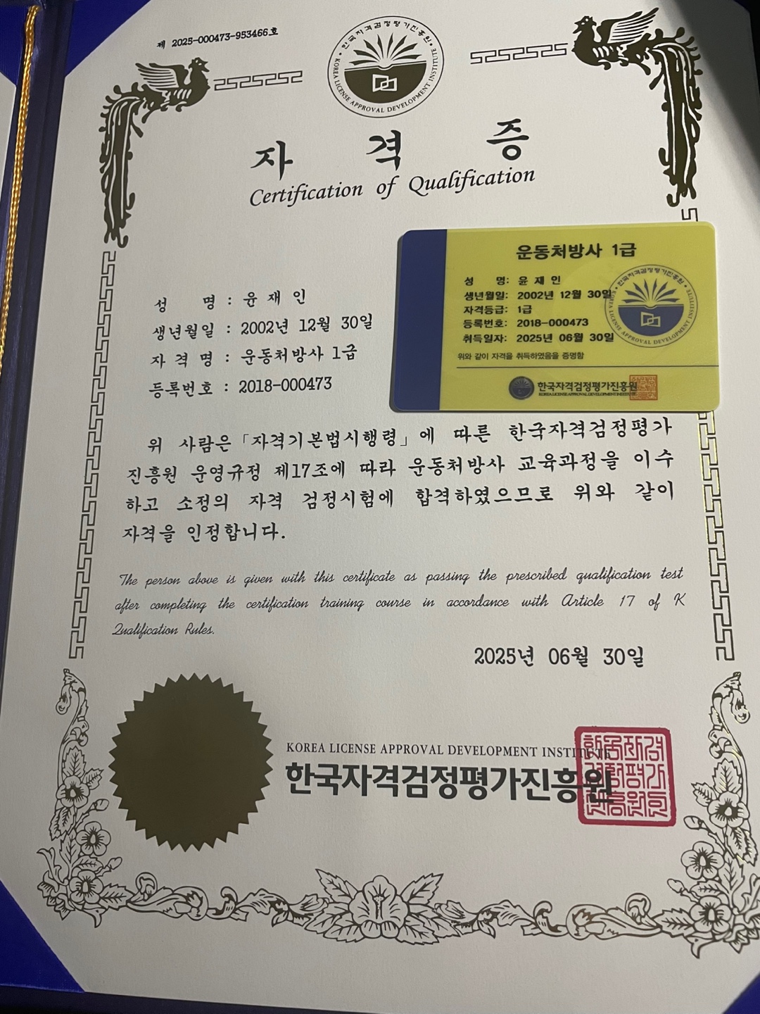 관심이 있던 운동처방사에 관련된 자격증을 공부 할 수 있어서 너무 좋았고, 강의 내용도 너무나 유익하고 알아듣기 쉽게 설명까지 해주셔서 배우고 공부하는데 너무 많은 도움이 되었습니다! 합격해서 너무 행복합니다!