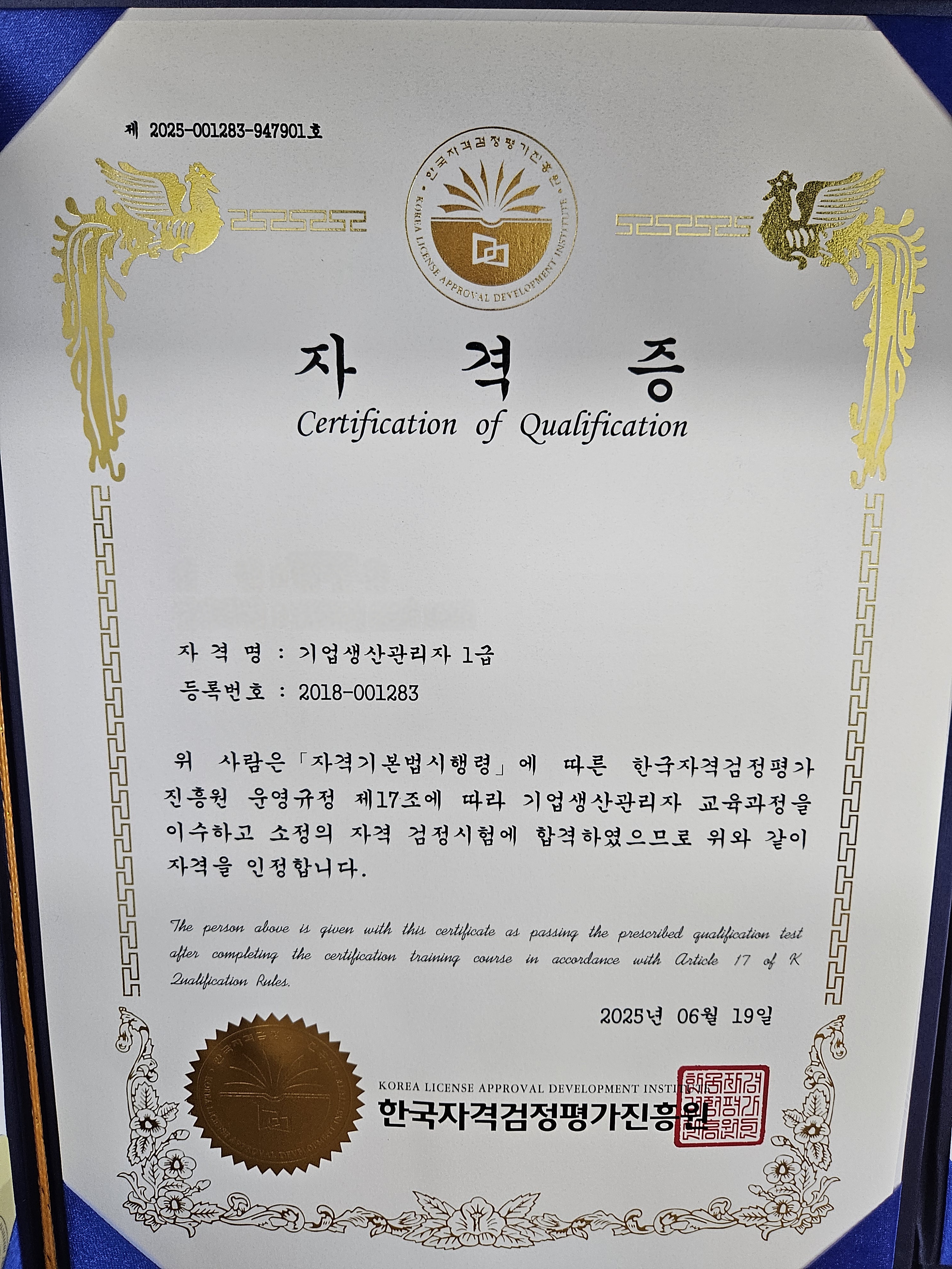 현재 생산관리 총관리하고 있어서 있으면 좋을것 같아서 쉅게 공부하고 도움이 많이 됐습니다.다들 화이팅하시고 필요한 자격증 합격합시다