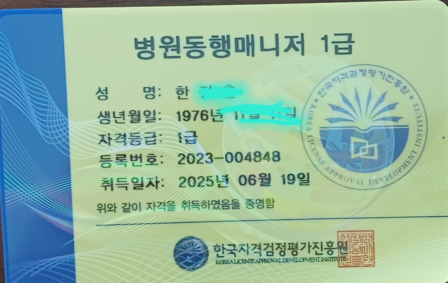 제가 병원동행매니저에 관심을 갖게된 이유는 아버지께서 투석을 시작하시게 되고 병원을 모시고 가게 되면서 입니다. 누구나 열정만 있다만 취득할수 있다고 생각합니다. 도전해보세요~