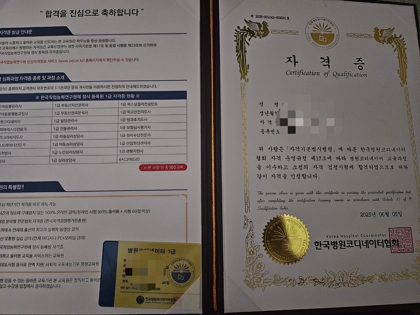 이직준비가 생각보다 너무 길어져서 혼자 너무 자존감이 많이 떨어져 있었습니다. 그래서 노후(?)준비도 그렇고 기존 하던 직무에서 더 카테고리를 확장해보자는 생각으로 병원 코디네이터와 병원 원무행정사 1급 준비를 해보게 되었어요. 그래서 먼저 따게된 코디네이터 자격증이었고 생각보다는 수월하게 따게 되어서 남편도 기뻐하였습니다. 물론 저두요! 병원원무행정사도 곧 딸 수 있을 것 같아 취득하는대로 이력서 여러군데 넣어서 빨리 이직하고 싶어요! ㅠ.ㅠ 너무 오래 쉬어서 너무너무 스트레스 받고 있었는데 자존감 회복할 수 있었던 6월이었습니다. 미리 알았었으면 진즉에 취득하여 경력쌓을걸 그랬어요.