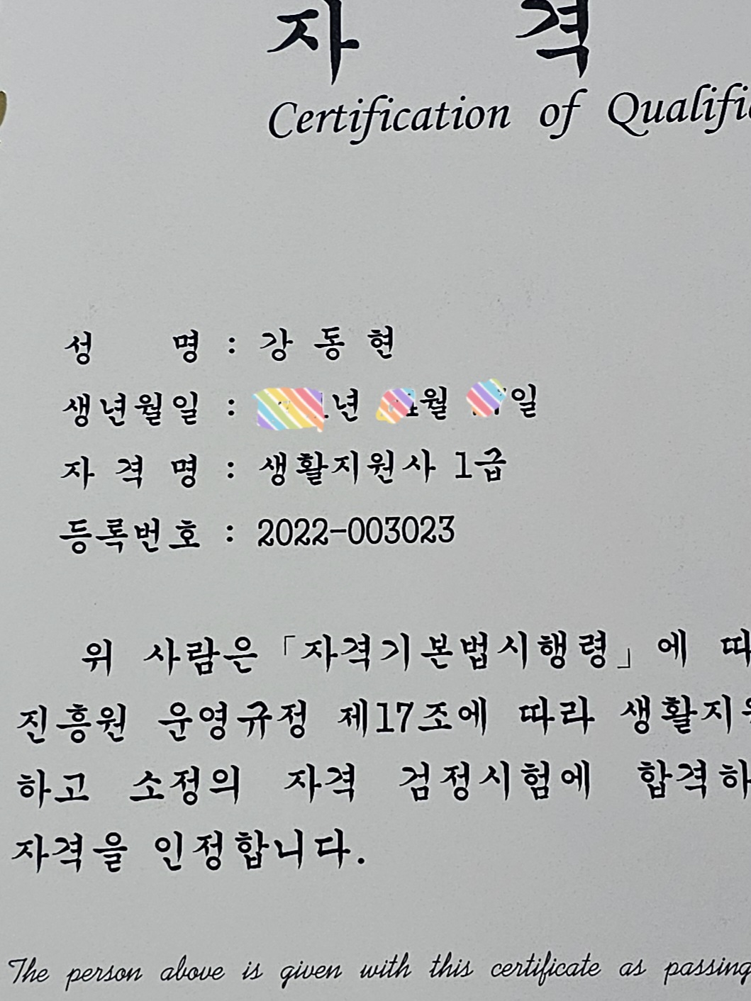 생활지원사1급 취득^^
