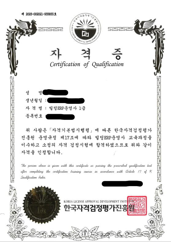 빌딩ERP운영사 빌딩 취업을 위해서 공부하려고 했는데 우연히 유튜브 보고 알게되어 이렇게 자격증까지 따게 되었습니다. 강의내용이 체계적으로 잘 되어있어 쉽게 이해할수 있어서 좋았습니다. 감사합니다.
