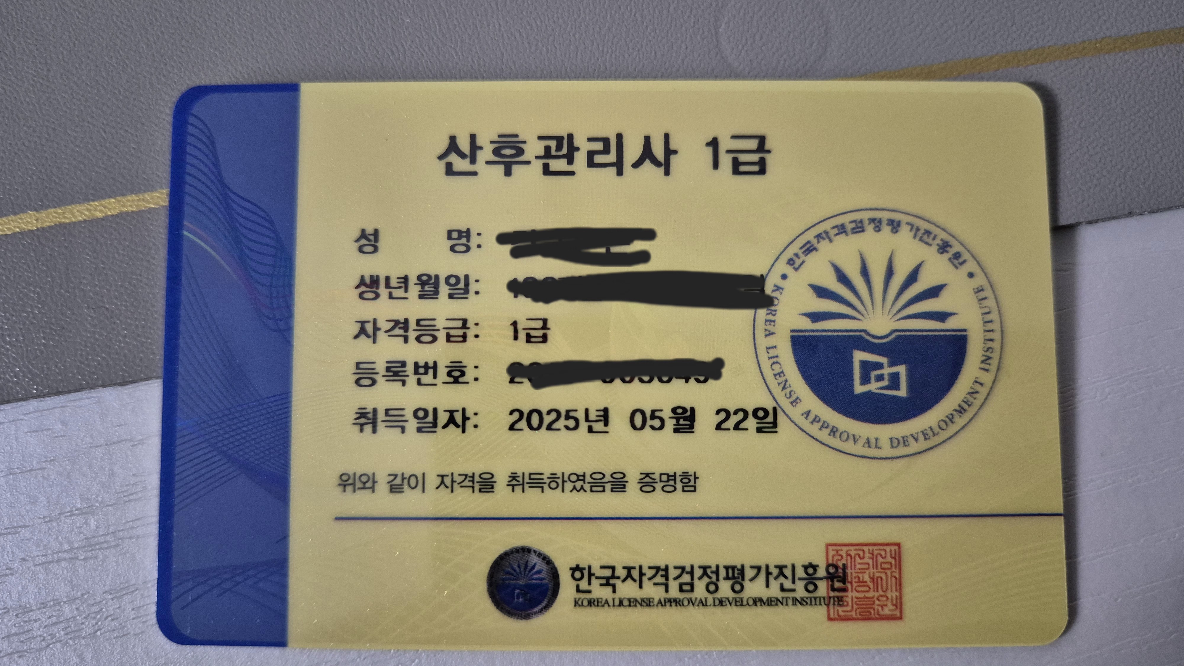 저는 59세 현재 산후조리원에서 산모들 유방관리와 산모 모유수유 자세를 잡아주는 일을 하고 있어서 훗날 산후관리사가 딱 좋겠다 싶어서 산후관리사 자격증을 땃는데 넘 감사하게도 무료강의 또 문제도 현재 일과 비슷해서 넘 쉽고 100점을 받았네요 넘 감사드려요 ~ 다른 학우님들 모두모두 화이팅 하세요^^