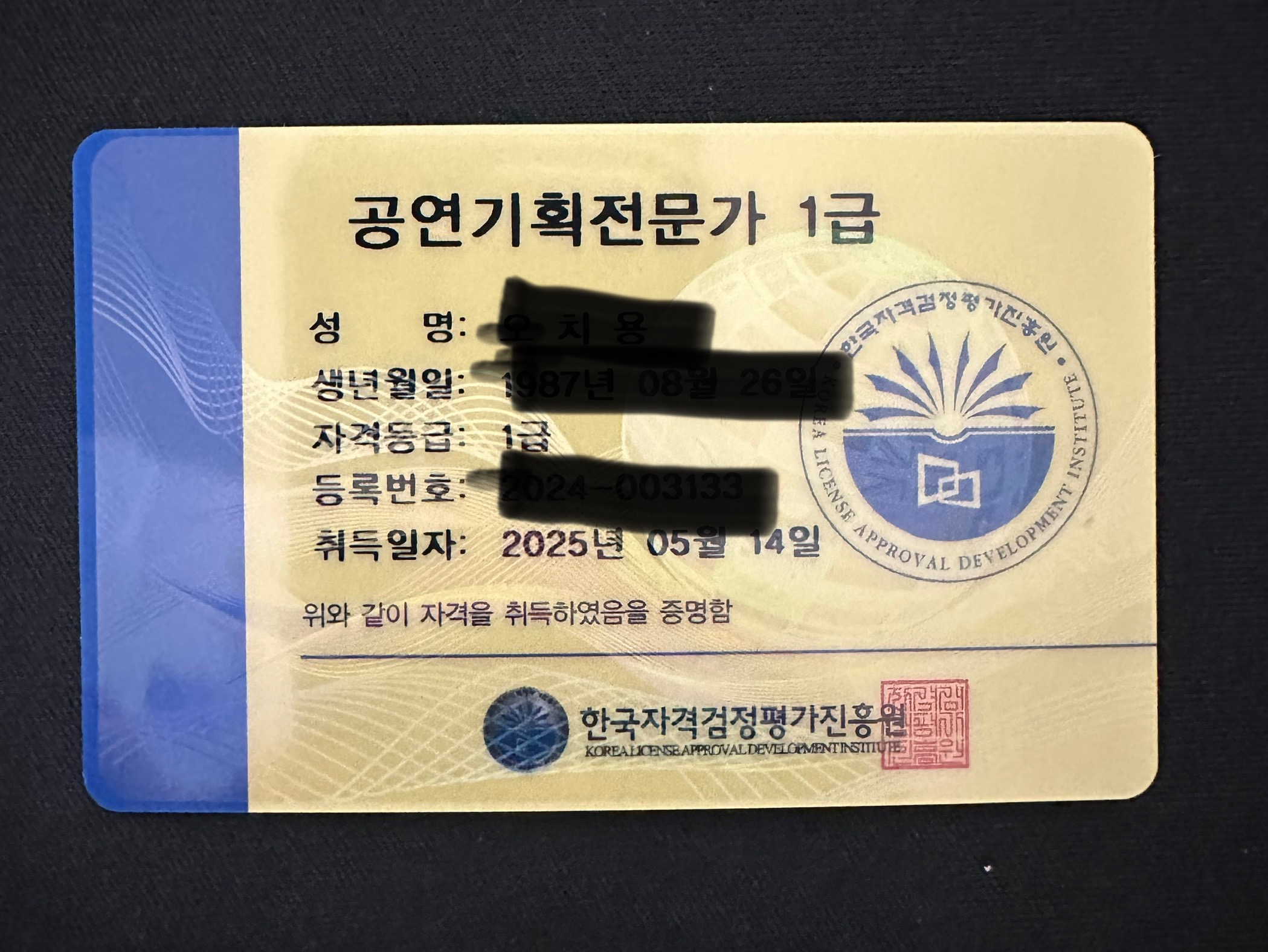 레크리에이션을 취득하면서 공연기획쪽도 같이 취득함녀 좋겠다고 생각했는데, 이렇게 기회가 되어서 취득할 수 있었습니다. 막연한 공연기획을 쉽게 풀이하고 설명하고 실습하면서 공연기획에도 한 발짝 더 다가갈 수 있었습니다. 파이팅!!