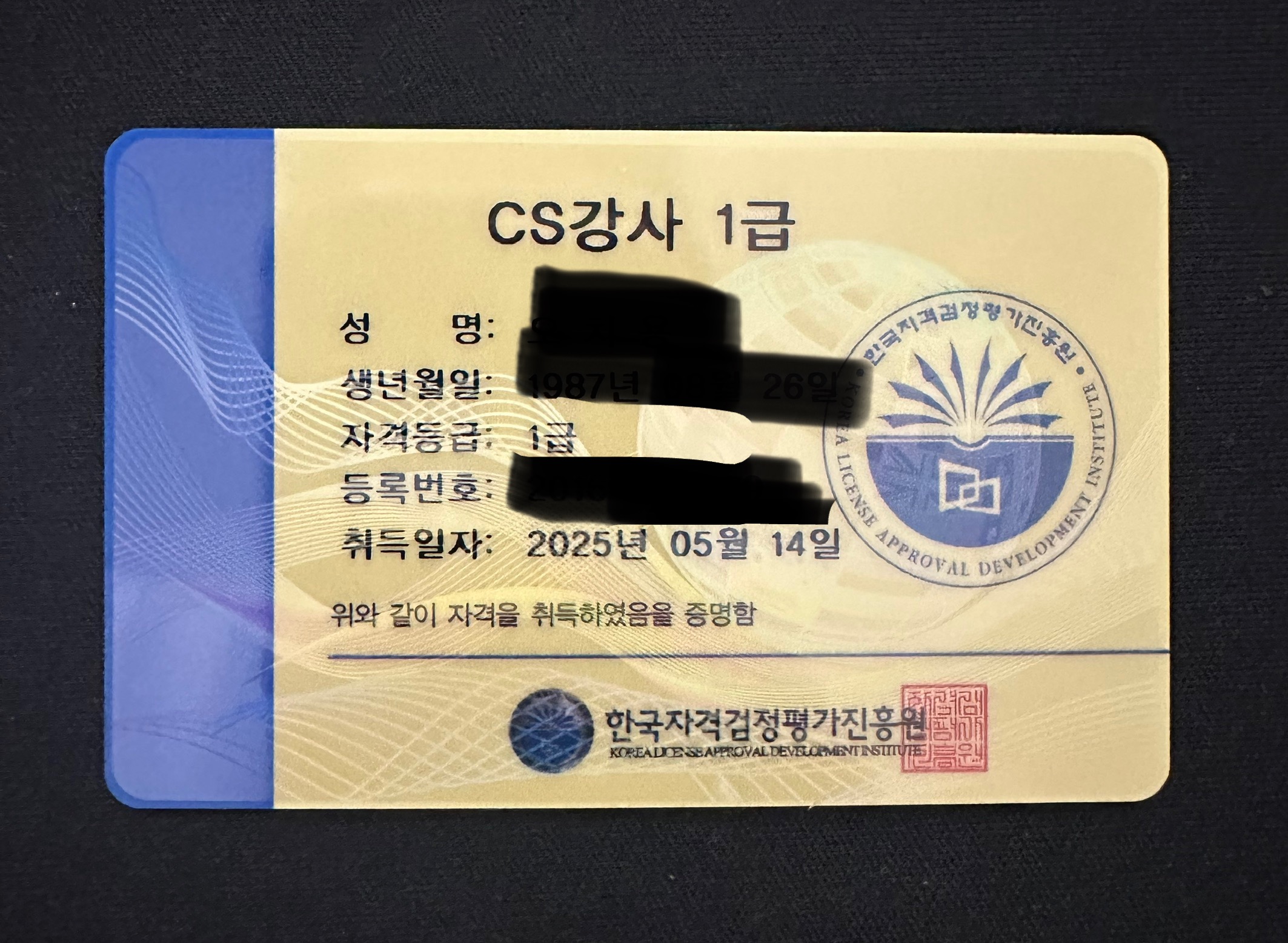 CS의 궁금증으로 시작했는데, 너무 재밌었고, 활력을 주는 시간이었습니다. 강사님의 말에 집중 할 수 있도록 강사님의 강의력 너무 좋았구요. 즐거운 시간으로 즐겁게 자격증을 취득 할 수 있었습니다. 감사합니다. 자격을 취득했지만 더욱 다듬고 공부해서 실전에 나가보려 합니다!