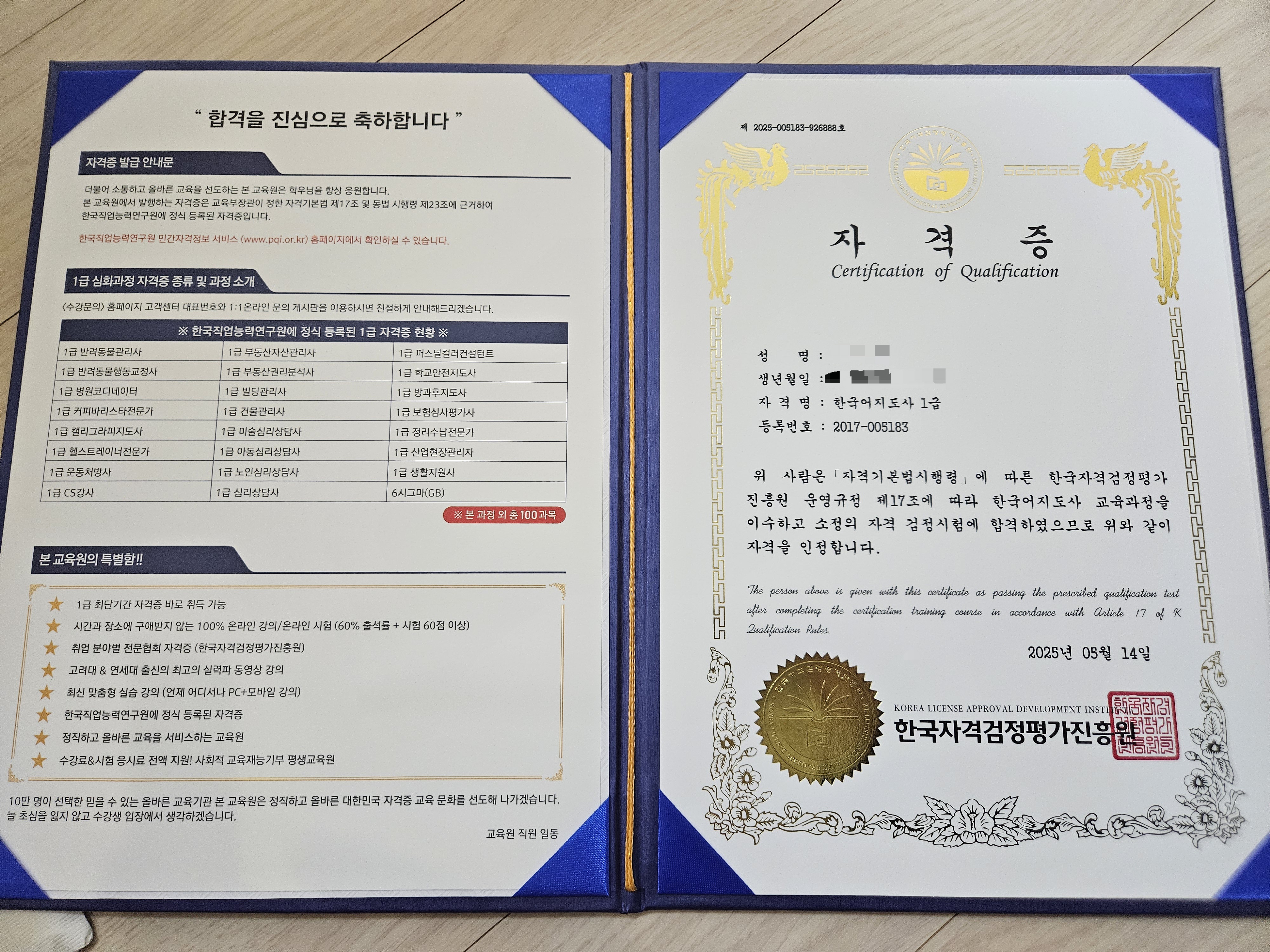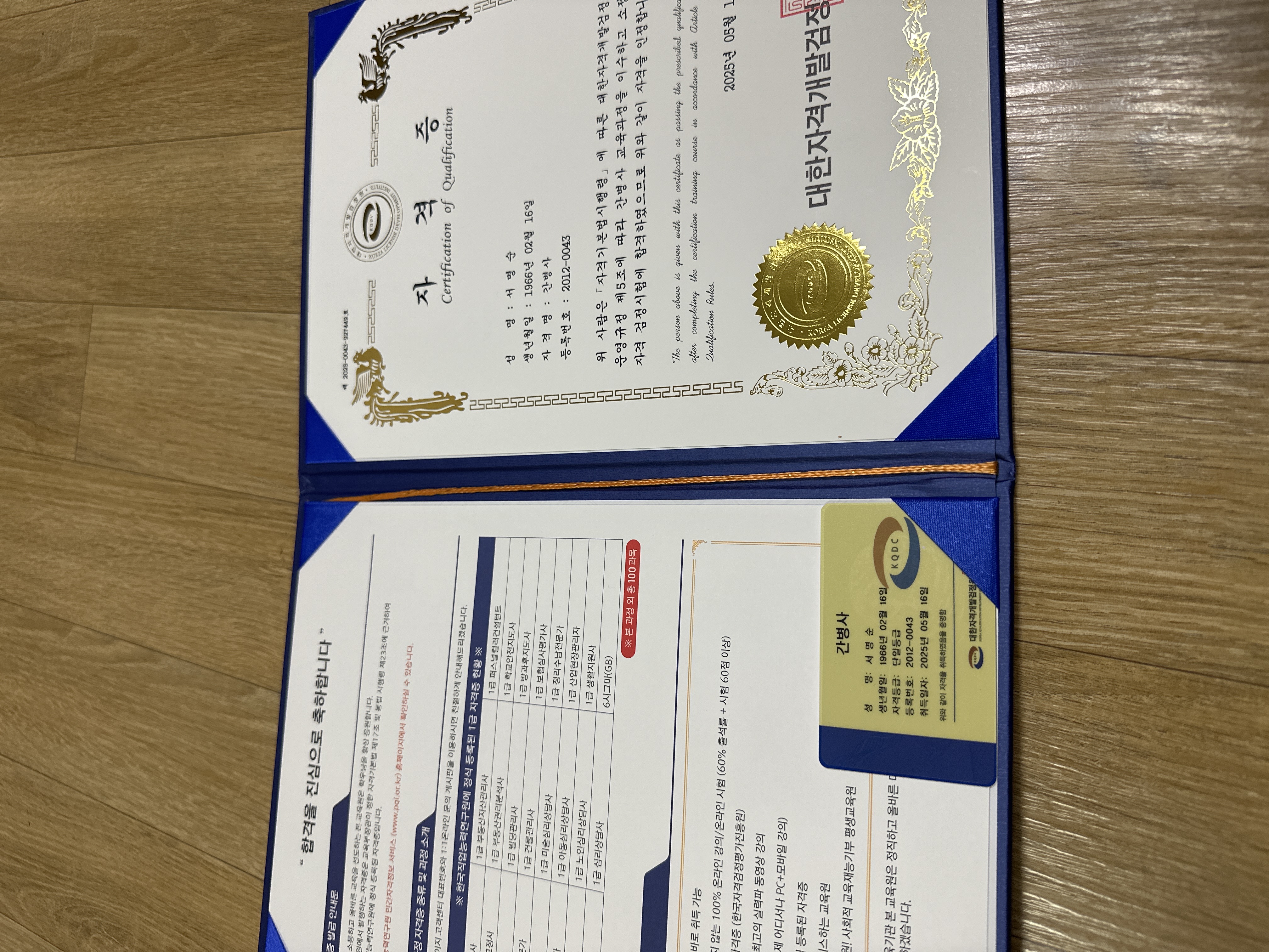자격증을 취득하게 되어 좋아요