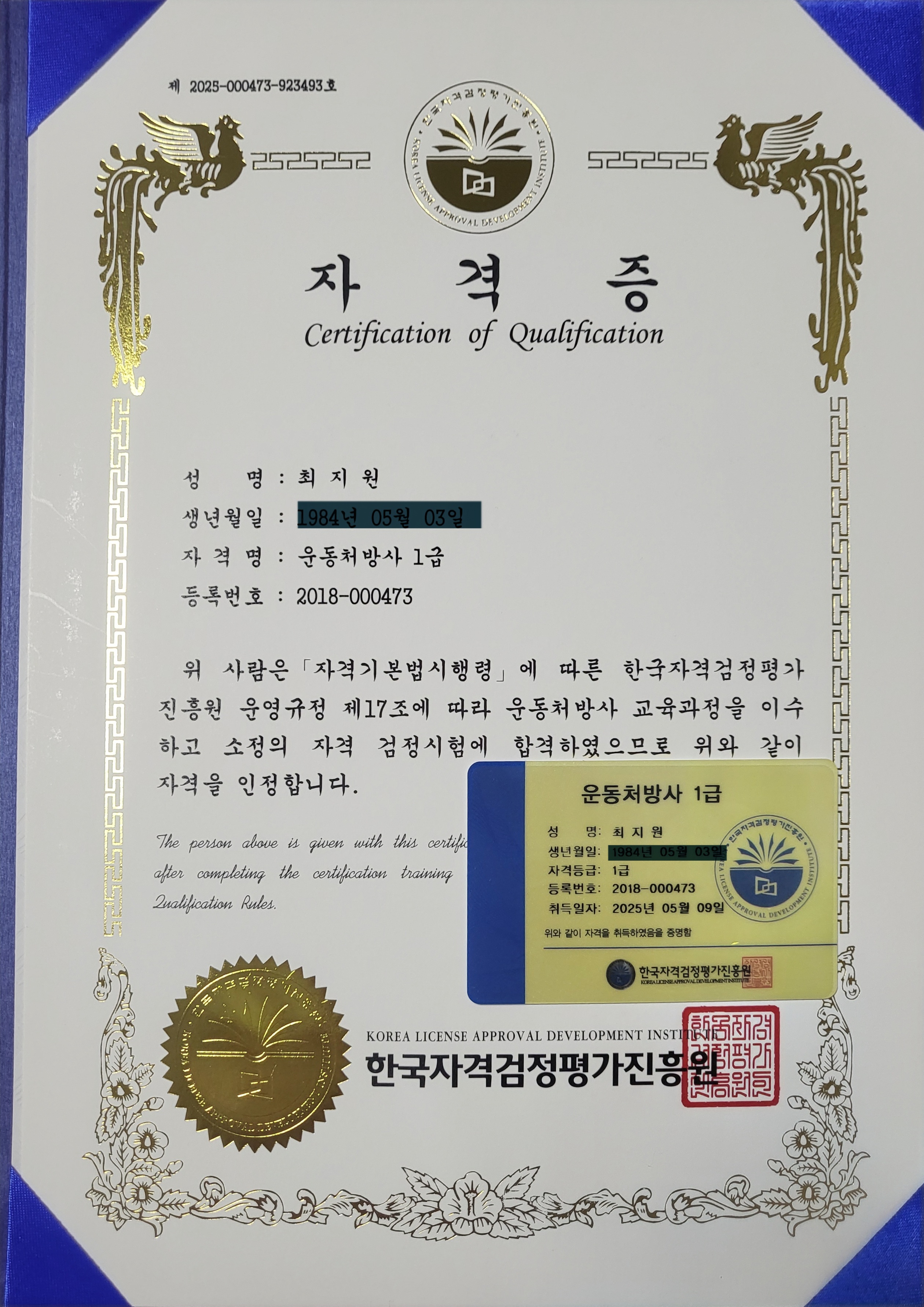 운동처방사가 하고싶어서 자격증을 따야겠다 하고 시작했는데 영상보면서 배우고 그렇게 어렵지 않은 문제를 풀고나니 자격증을 발급받았아요 너무 좋아요