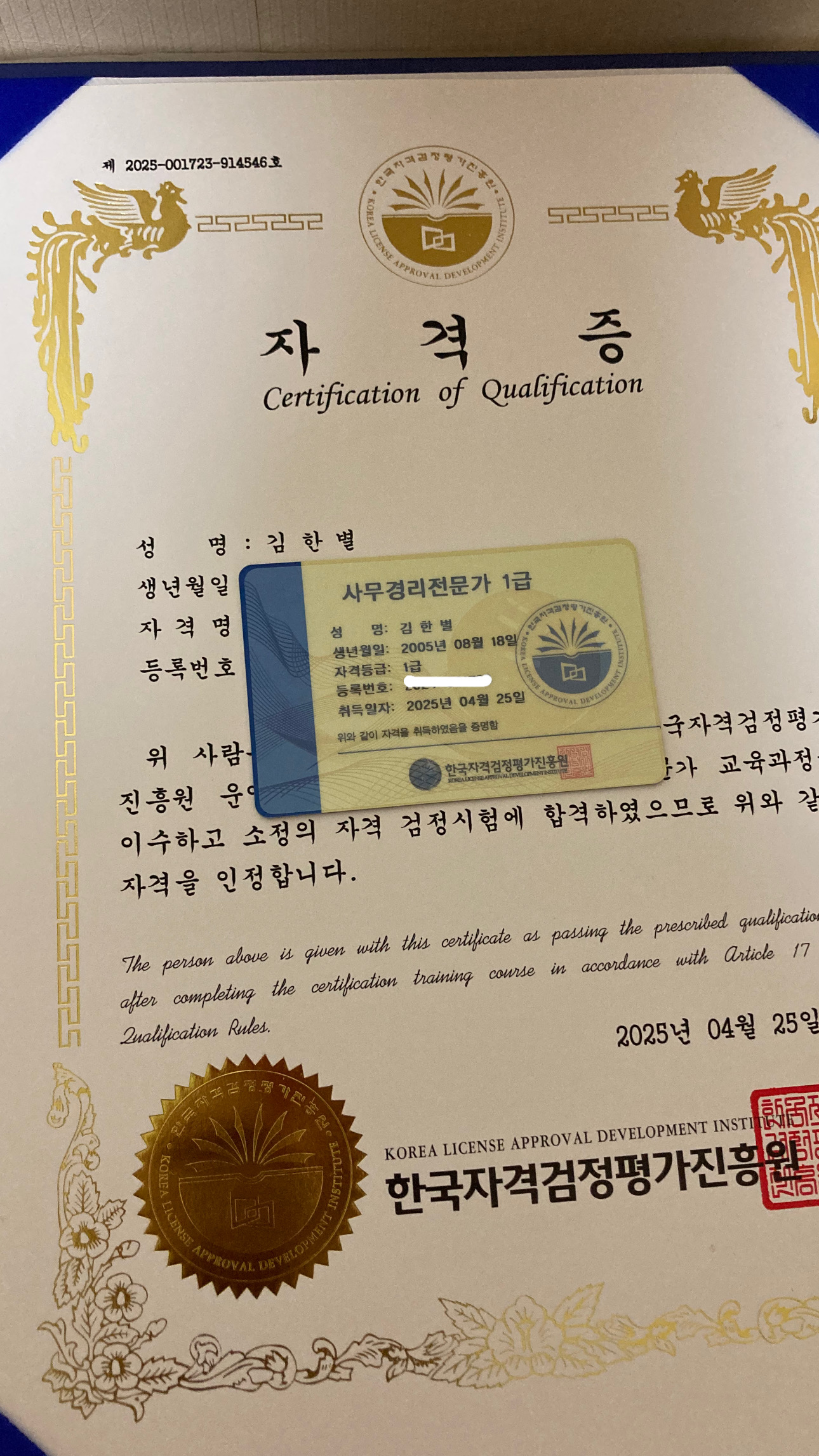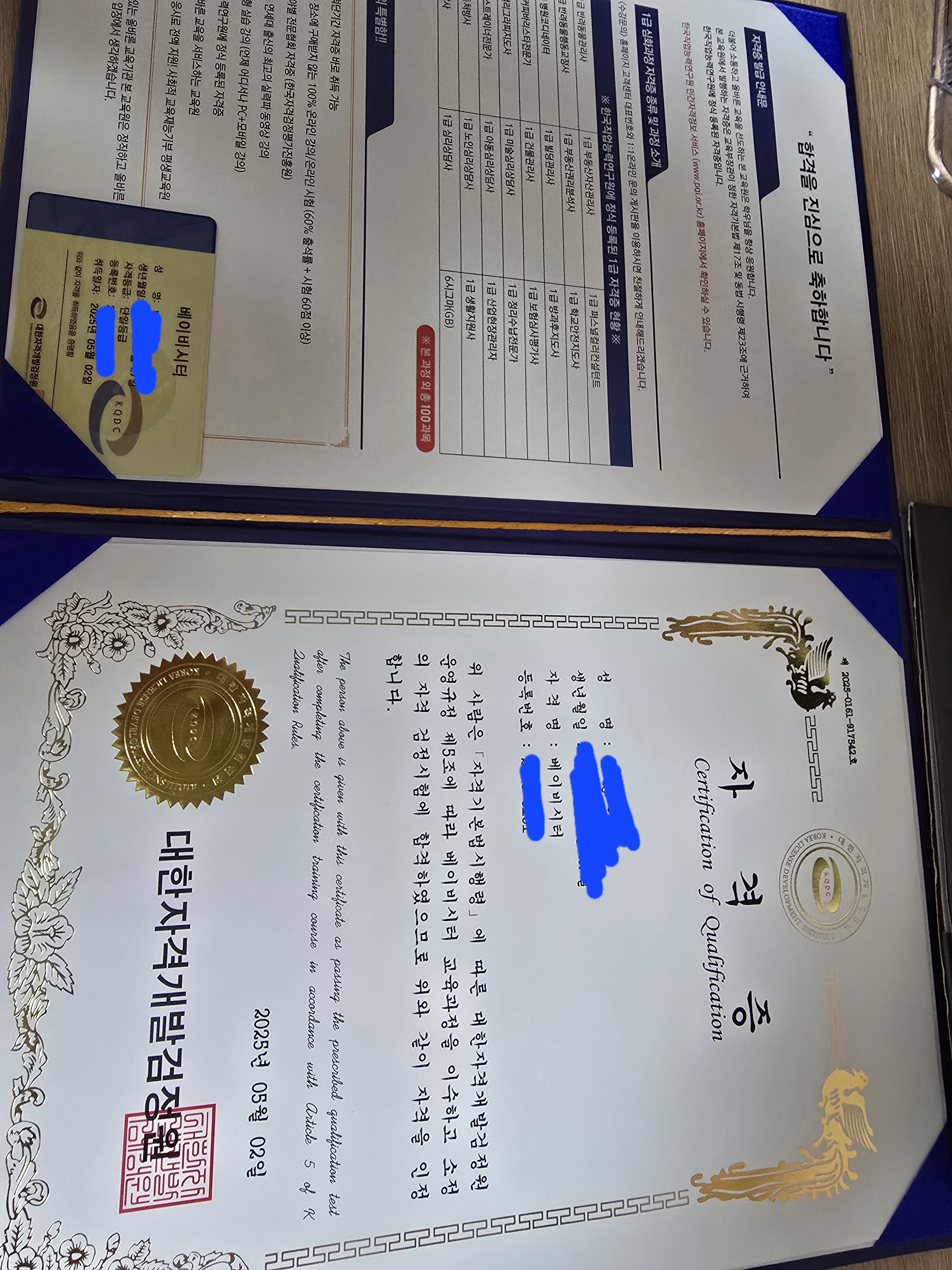 합격후기 작성 시 자격증을 받으신 사진을 같이 첨부해주셔야 합니다.