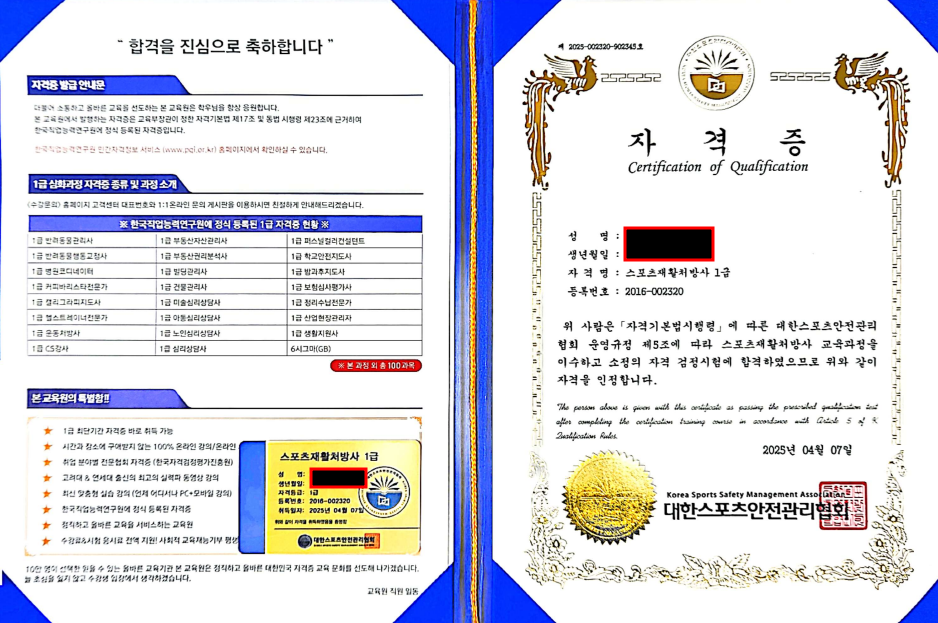 스포츠재활처방사 1급 - 직장인인데, 너무나 효율적으로 취득했습니다.