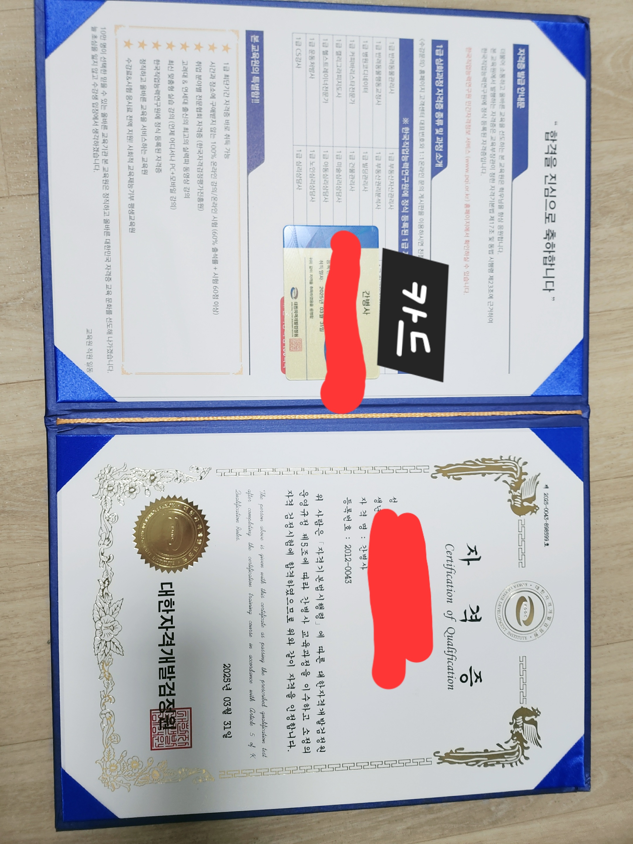 합격후기 작성 시 자격증을 받으신 사진을 같이 첨부해주셔야 합니다.