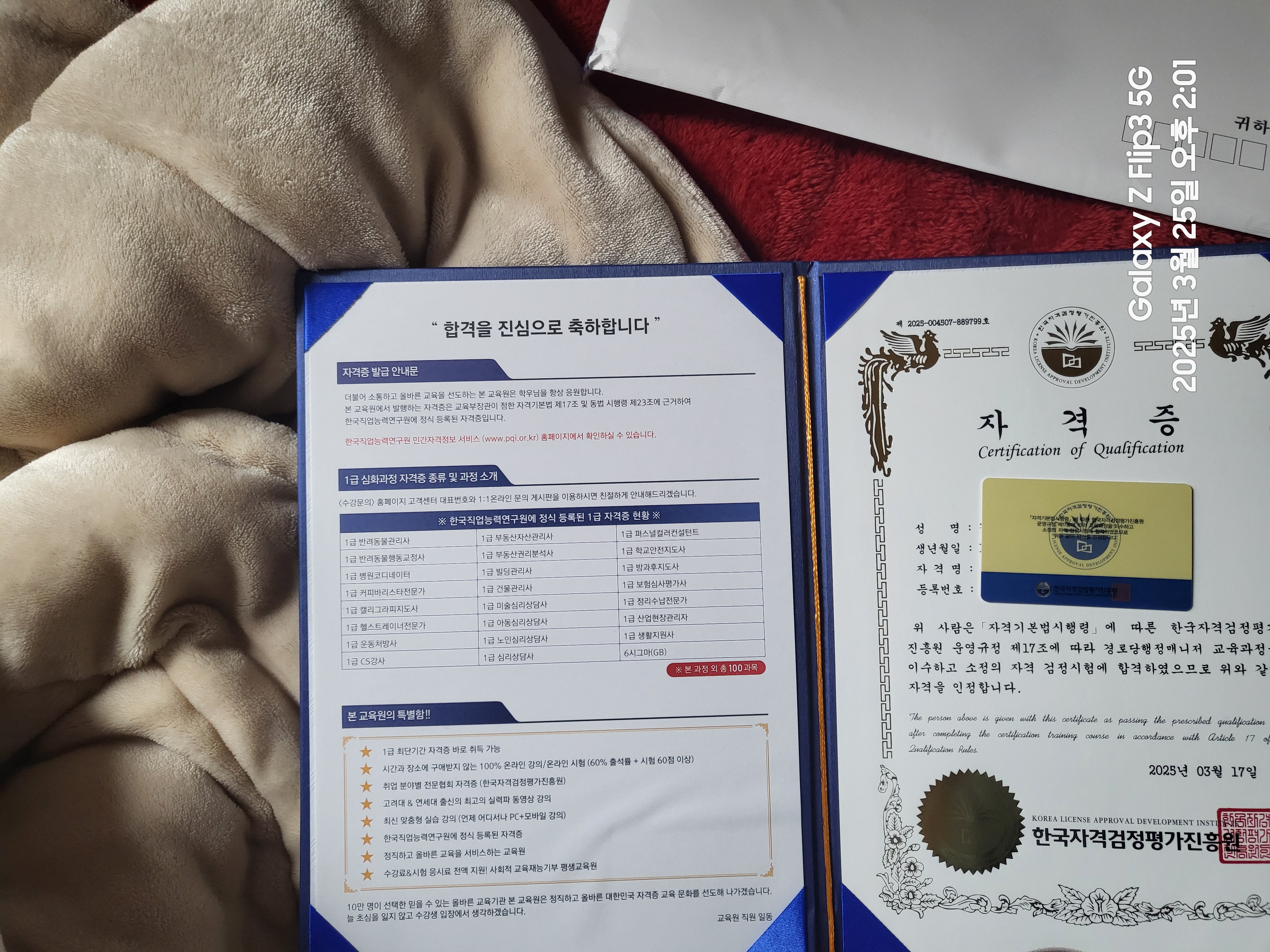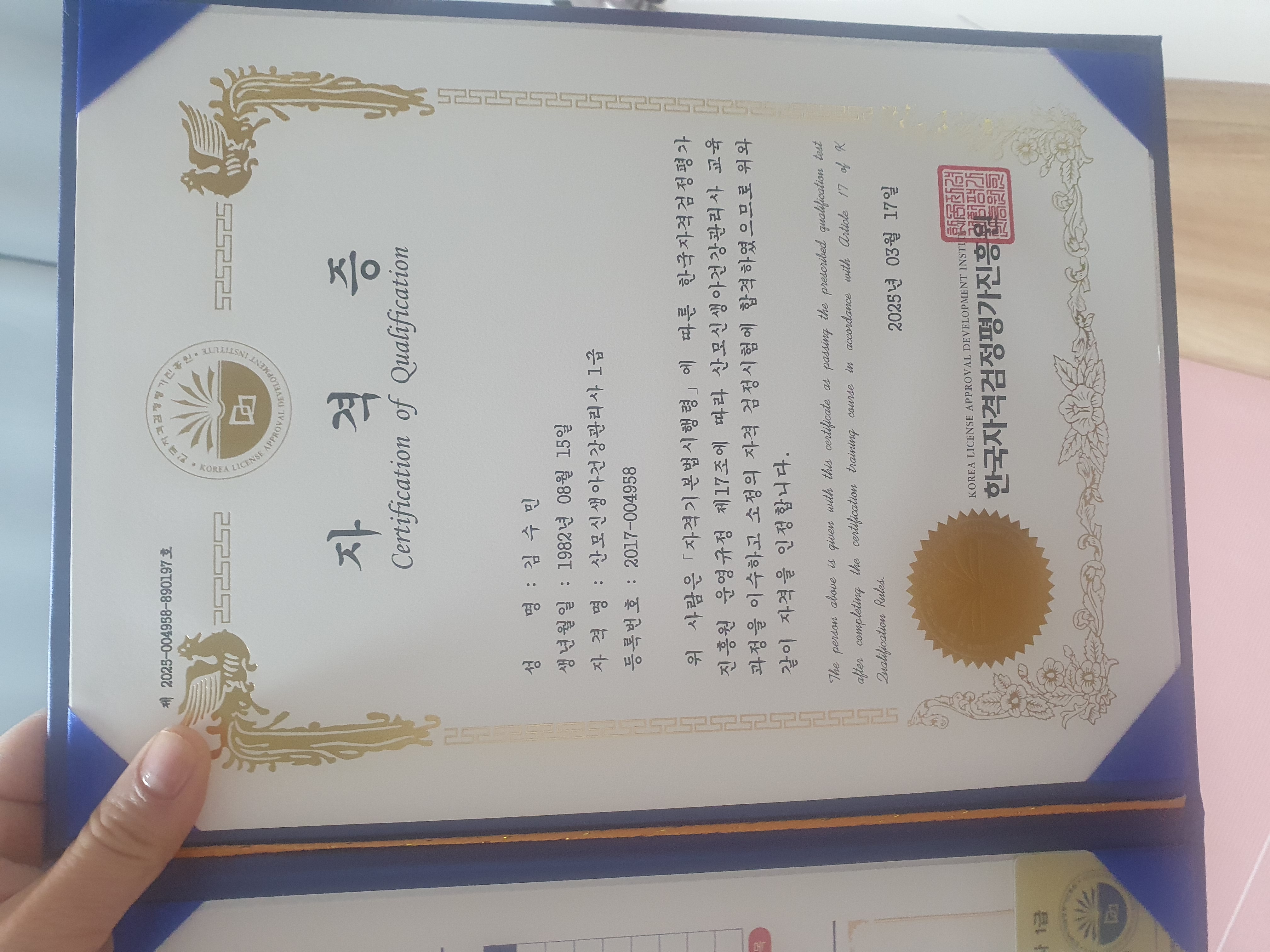 노년을 위해 뭔가 준비해야지 했는데 교육부터 합격증받기까지 얼마 안걸려서 좋았어요. 앞으로 하나씩 하나씩 다른 자격증도 공부해 준비해둬야겠네요. 뿌듯합니다.