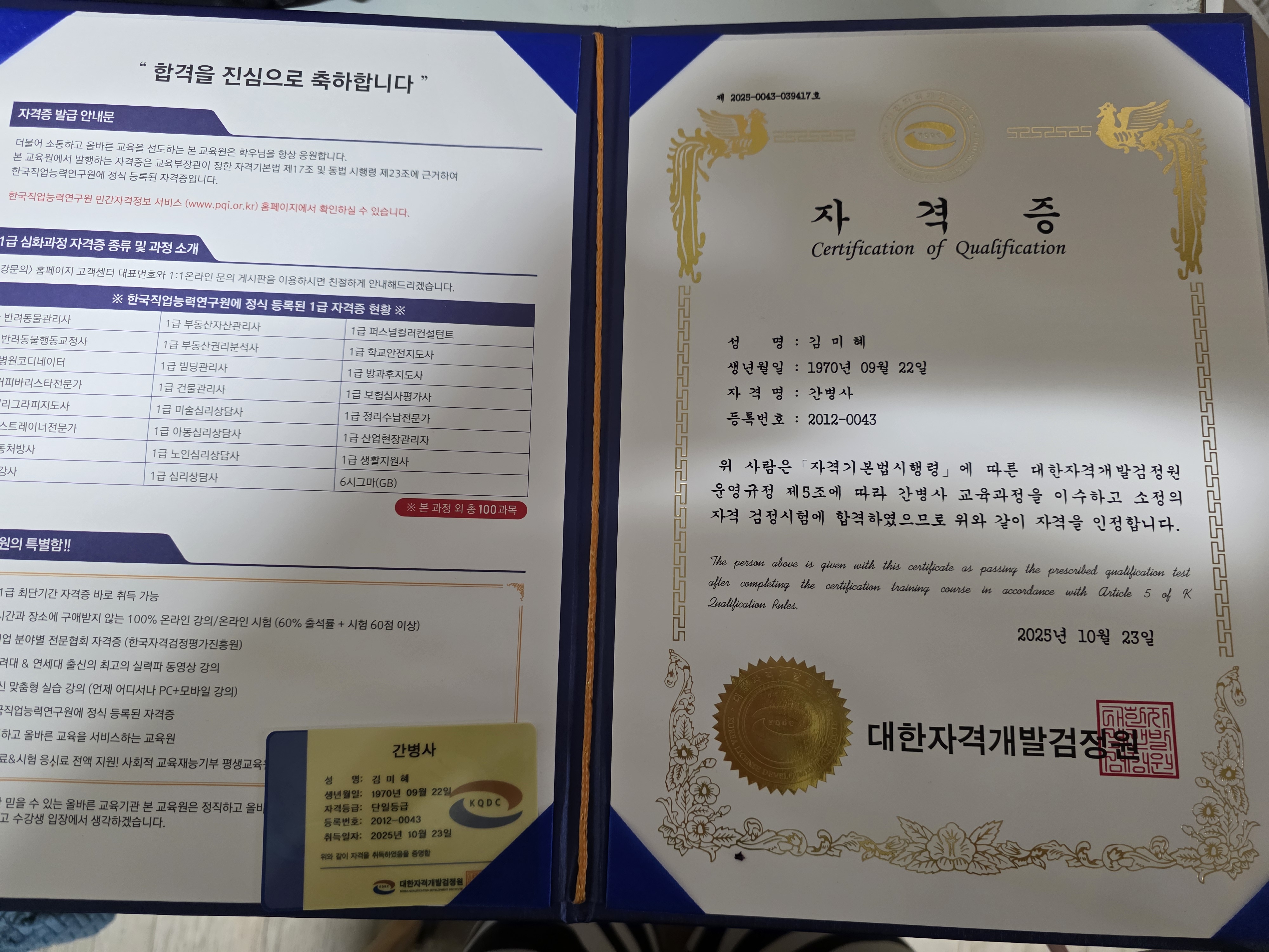합격후기 작성 시 자격증을 받으신 사진을 같이 첨부해주셔야 합니다.