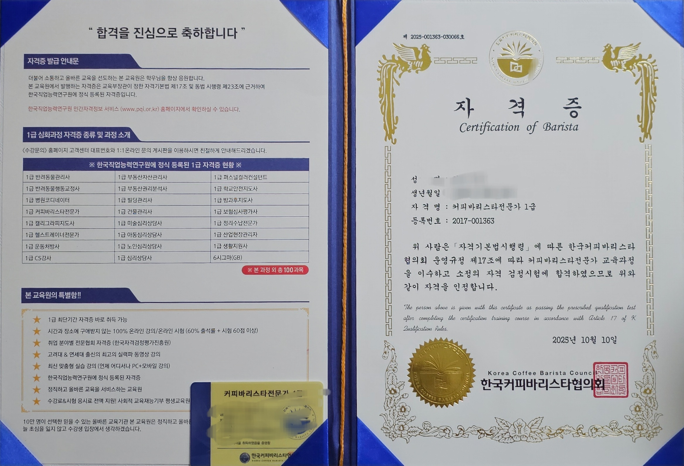 벌써 3개째~~~ 이러다 자격증 다 따는건 아닌지 쉽게 딸수있어서 너무 좋아요~^^