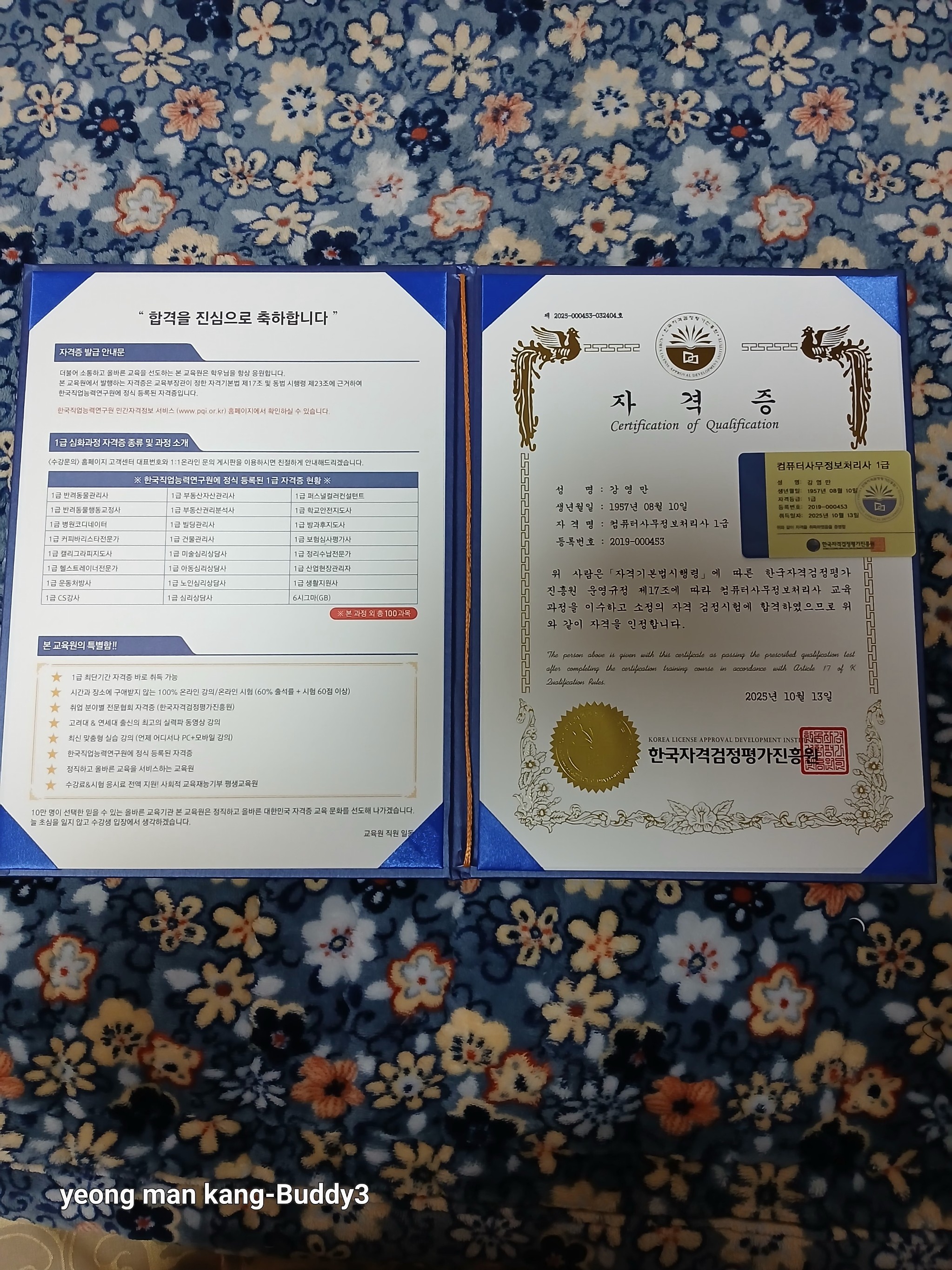 ☆컴퓨터사무정보처리사1급 취득하여 기쁨이, 행복이 함께 하는날 입니다 내년[2026년] 취업을 위하여 노력하며, 자격증 진가를 보여 줄 기회가 옵니다 부지런히 앞으로 갑니다 모두 행복 가득한 내일을 위하여 힘차게, 기분좋게, 웃으면서 갑시다