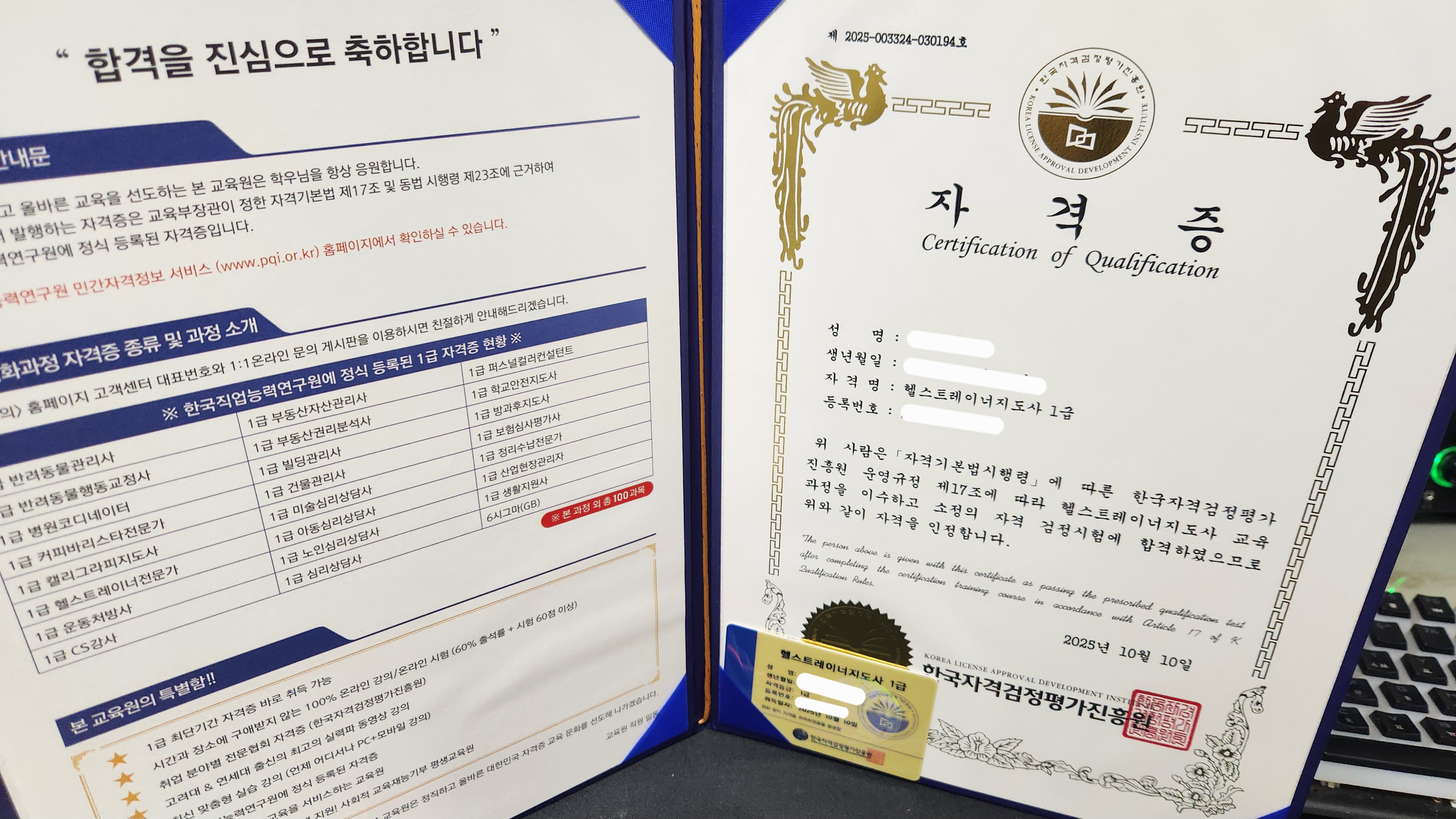 운동 쪽에 관심이 많아서 공부하게된 스포츠운동관리사! 혼자 조용히 강의를 들을수 있어서 몰두할수밖에 없겠더라구요. 좋은 강의로 많이 배울수있었고 한번에 합격하게 되어 너무 기쁘네요 ^^ 조금 더 욕심내어 다른 자격증도 더 공부해서 꼭 합격하고싶어지네요. 언제 어떻게 바뀔지 모르는 인생 , 틈틈히 공부해서 준비하는 사람이 되겠다는 인생관이 생기게 되었습니다! 감사합니다^^