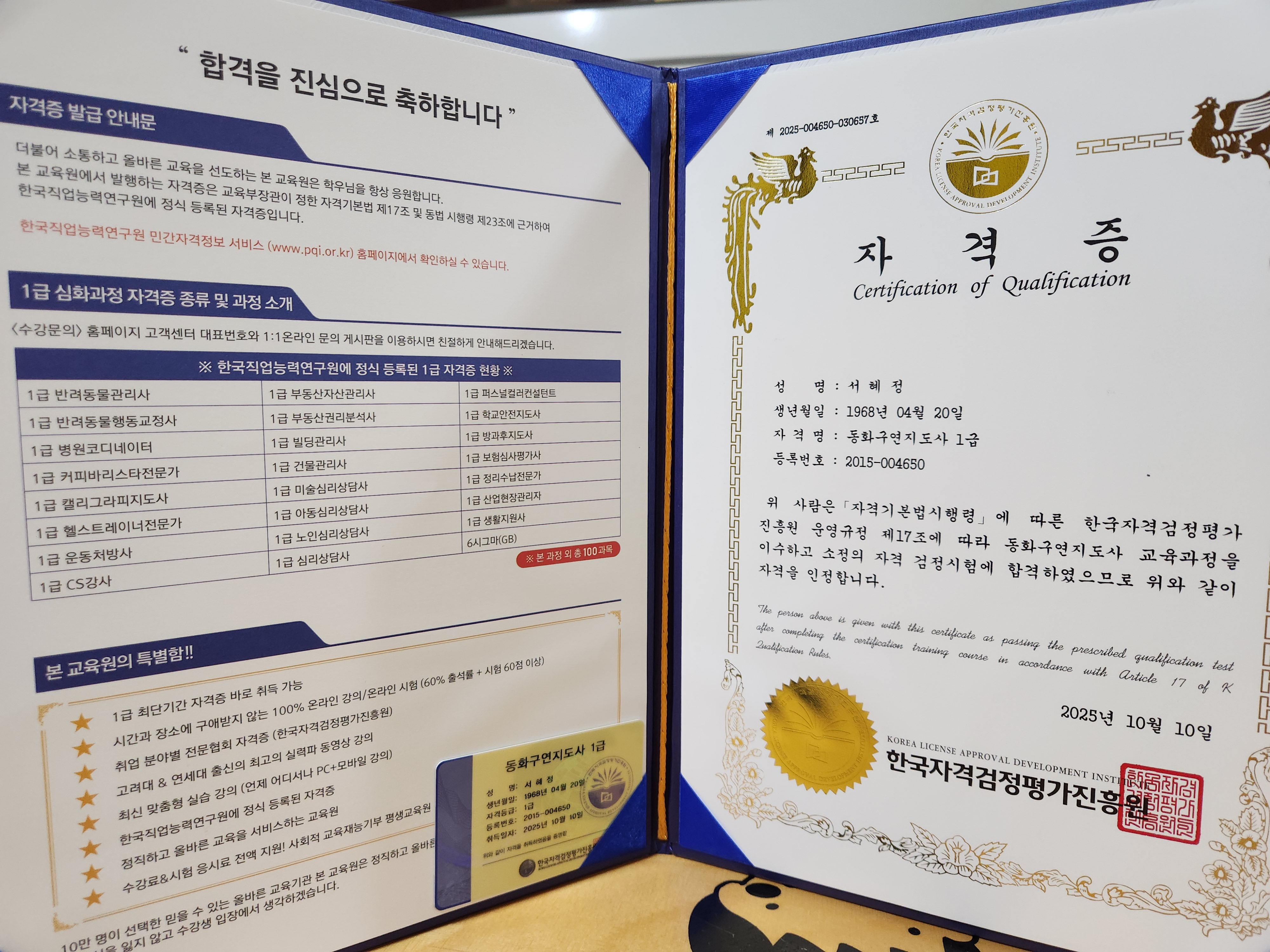 관심만가지고있던차에~~딸과 같이 강의듣고 딸과같이시험보고 딸도 저도 둘다합격했어요~~예전과달리 카드까지 나오고 너무 좋네요~^^