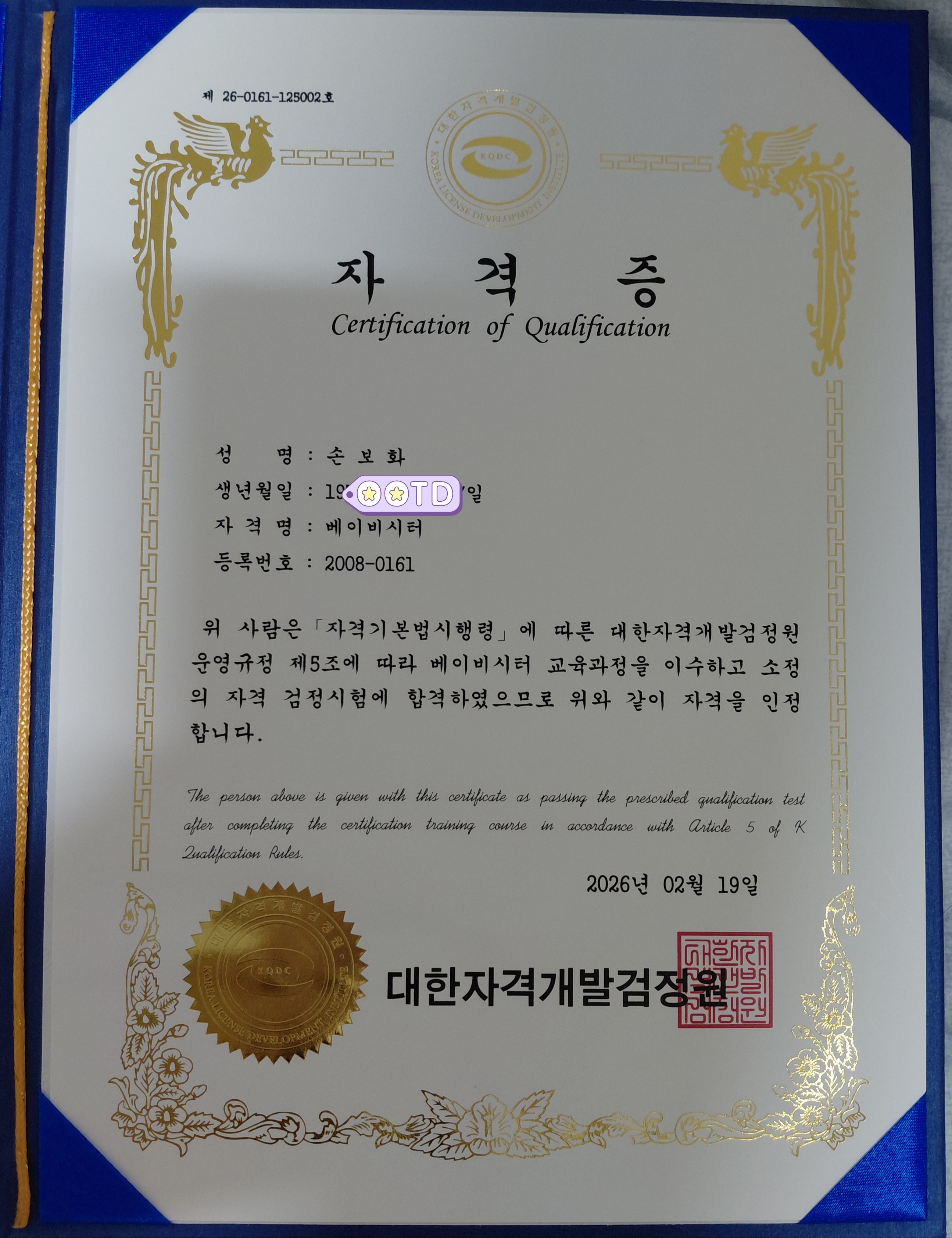 베이비시터 합격~ 2급 정교사 자격증도 있는데 몸 빨리 컨디션 회복해서 좋은일 시작해야겠어요~