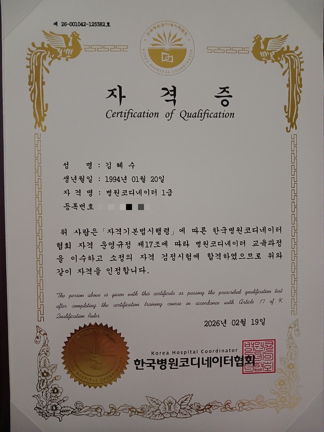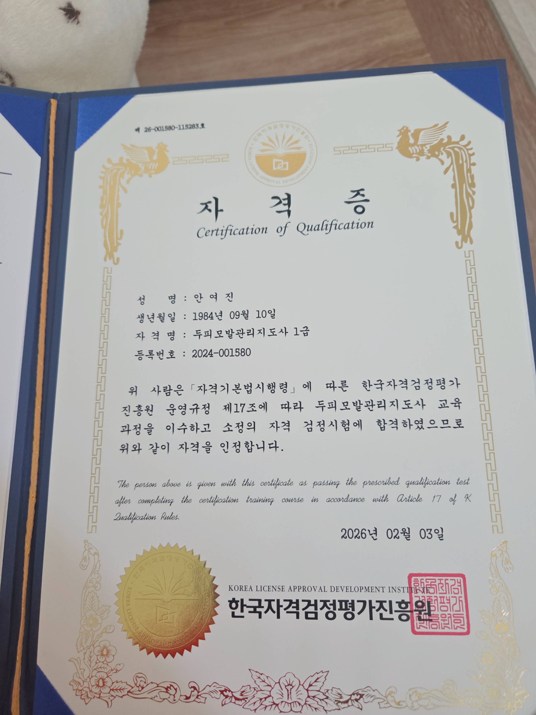 자격증 받았어요