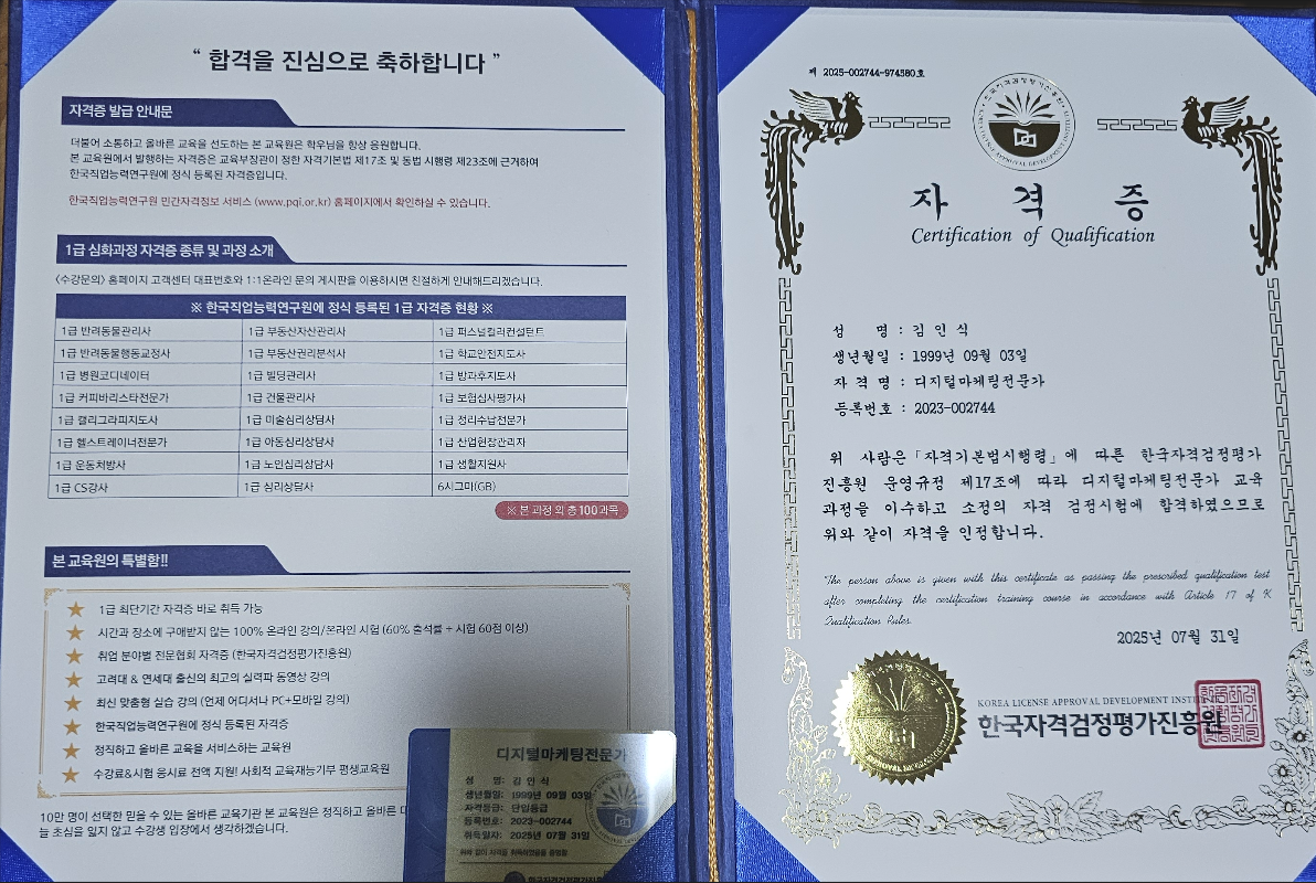 합격후기 작성 시 자격증을 받으신 사진을 같이 첨부해주셔야 합니다.