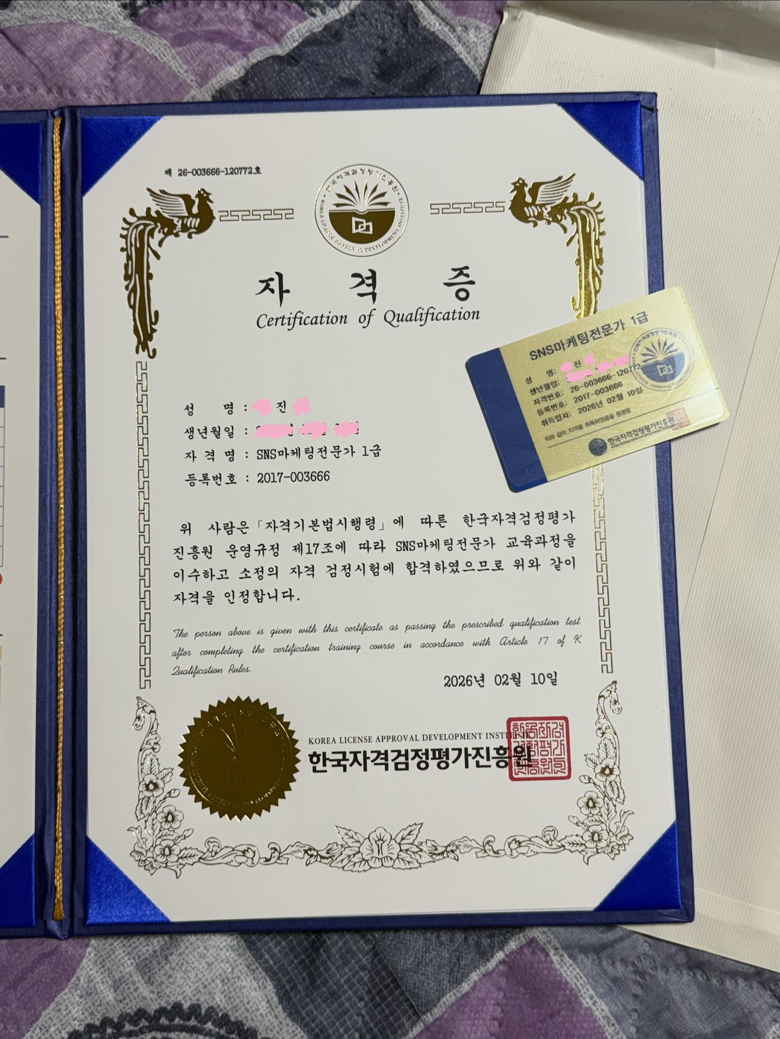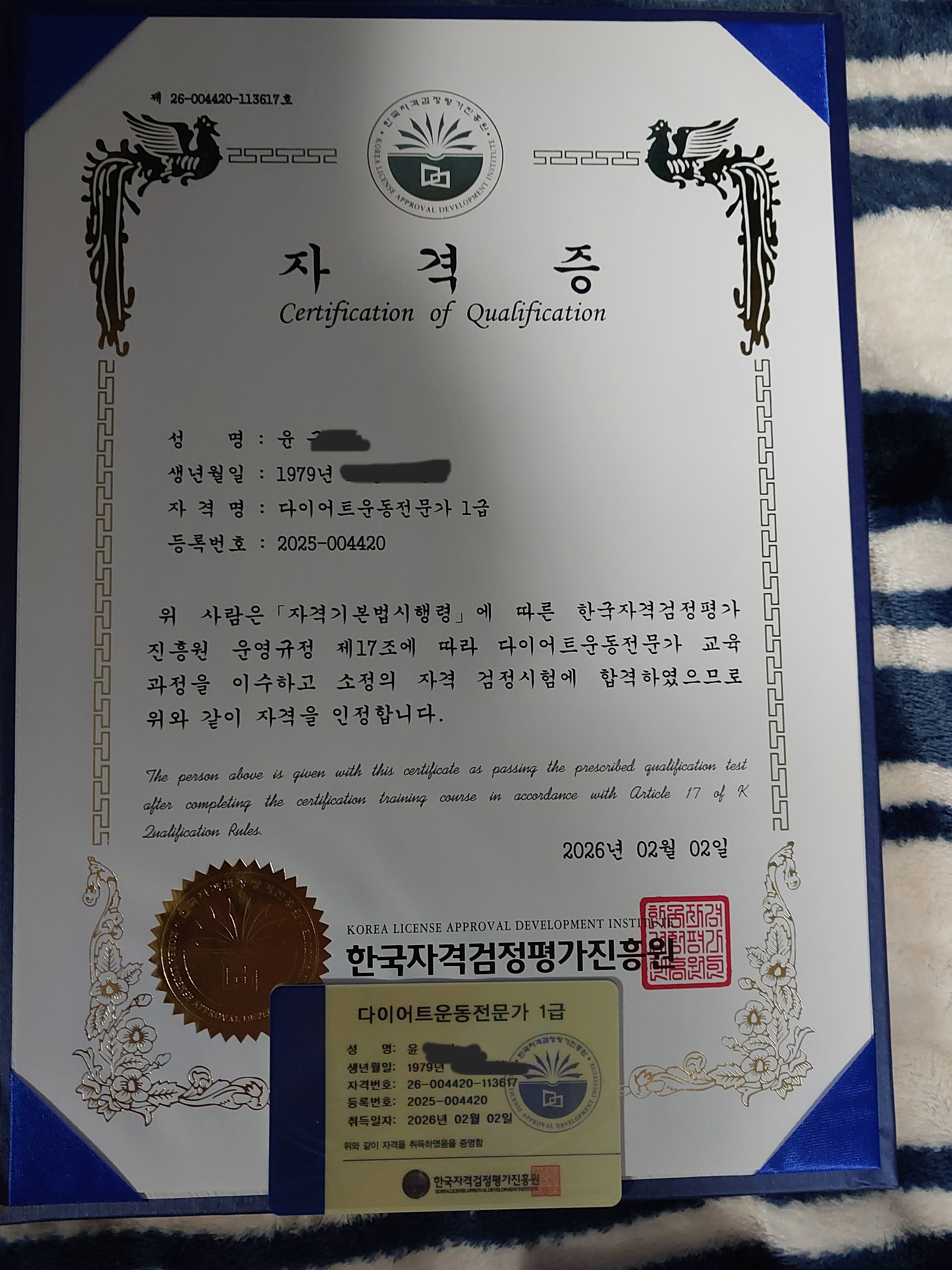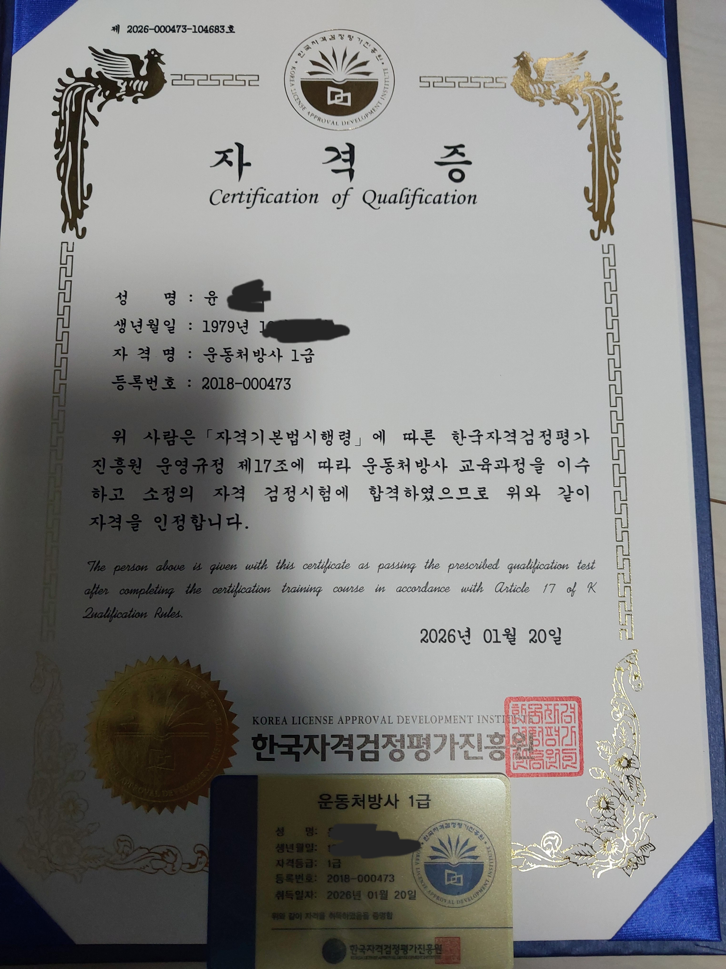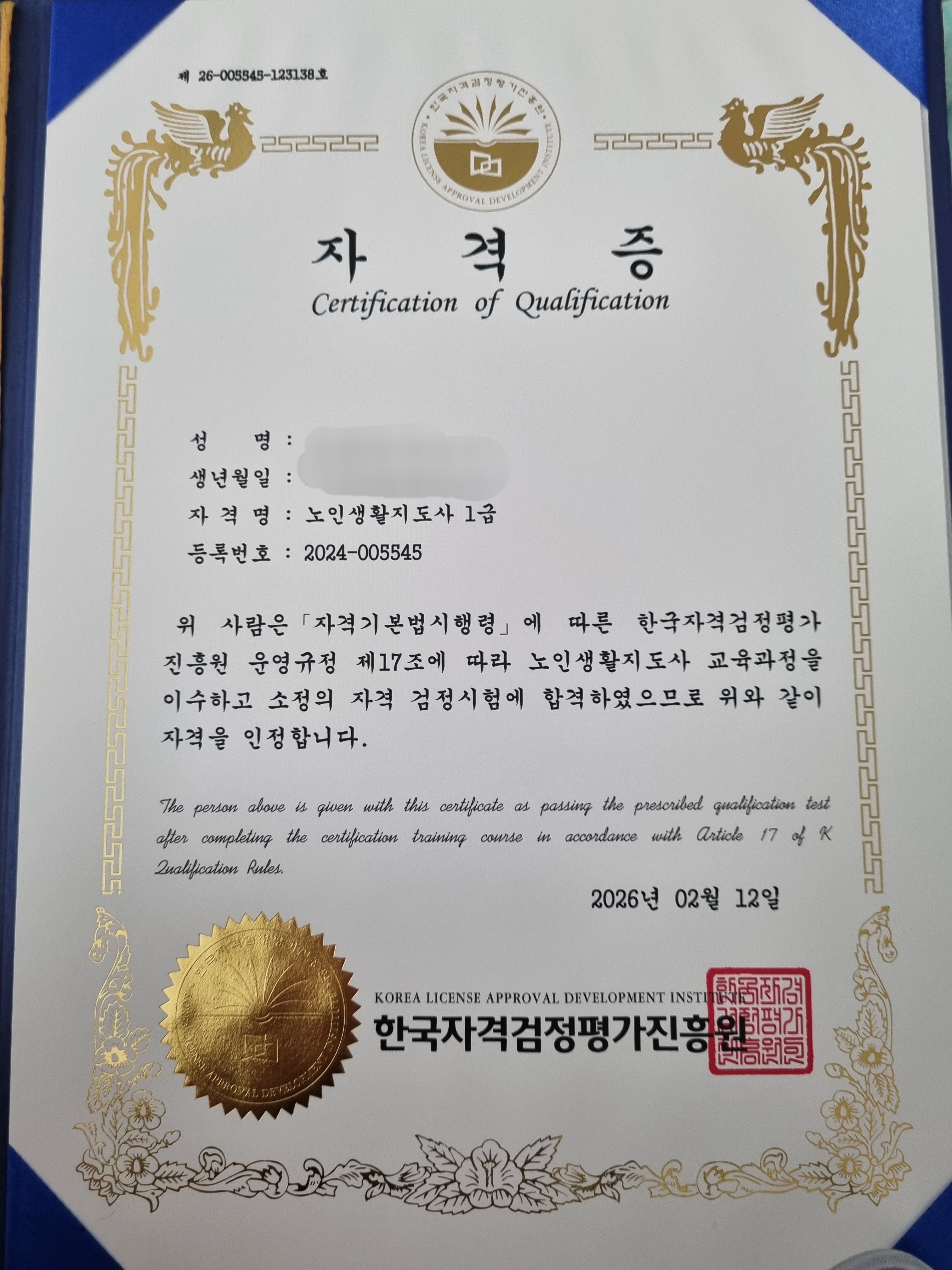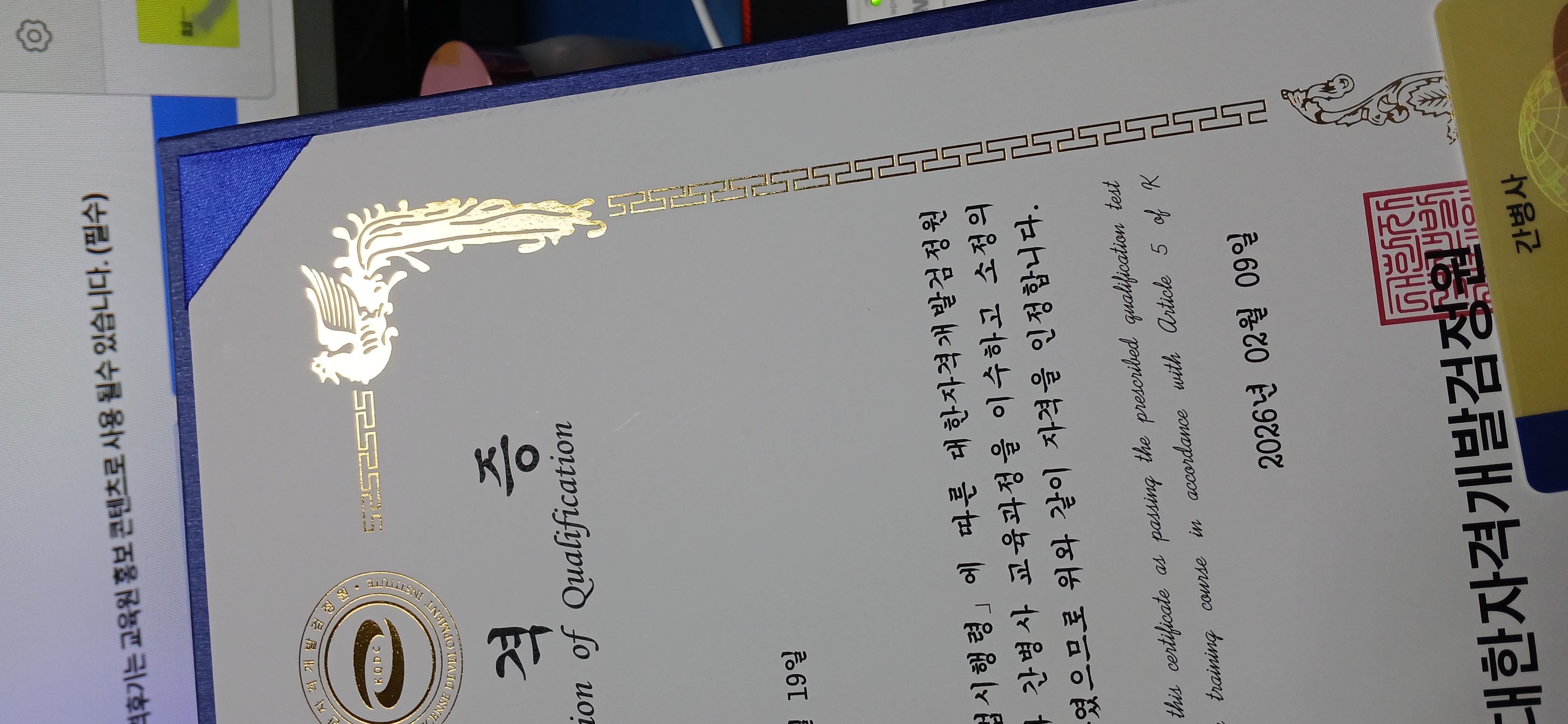 자격증 받았어요