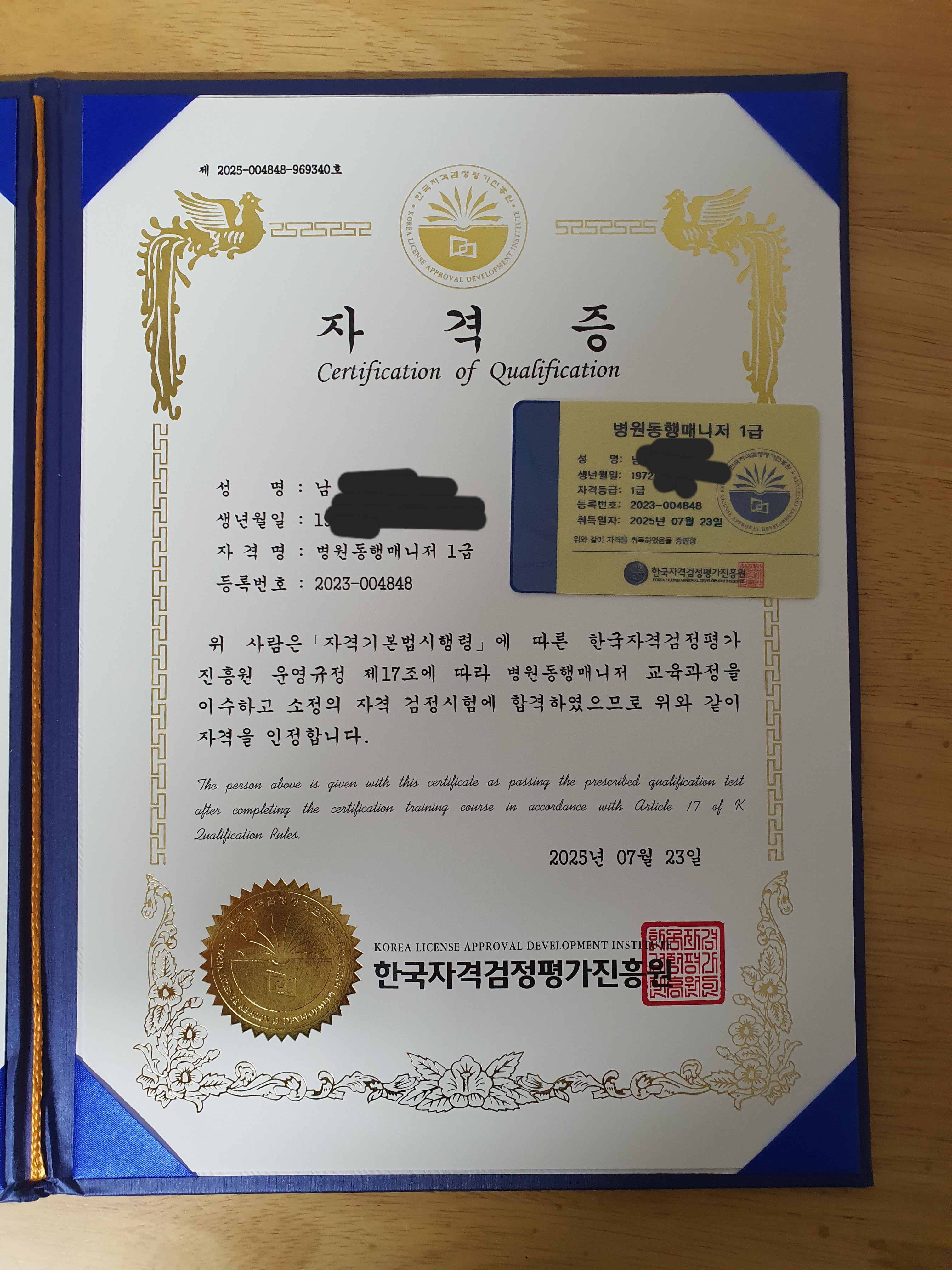 퇴근하고 딱히 하는일 없이 시간 보내다 언니 추천을 받아 병원동행매니져라는 것을 알게되었어요. 시간내어 조금씩 영상들으며 공부했는데 각종 매스컴이나 sns를 통해 알고 있는것과 알지만 어설프게 알고있는것 등을 이번 기회에 자세히 알게되어 도음이 많이 됐어요. 자격증 실물을 막상 받아보니 유익한 시간을 보낸 것 같아서 뿌듯하네요. 다른 종류도 한번 도전해 볼까합니다.