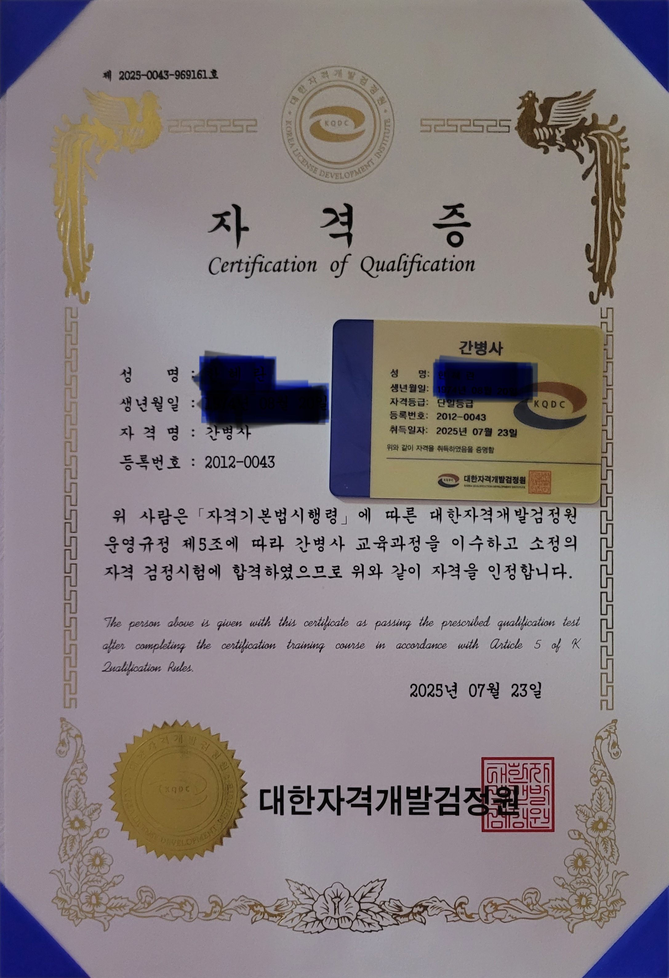 자격증 땄습니다.