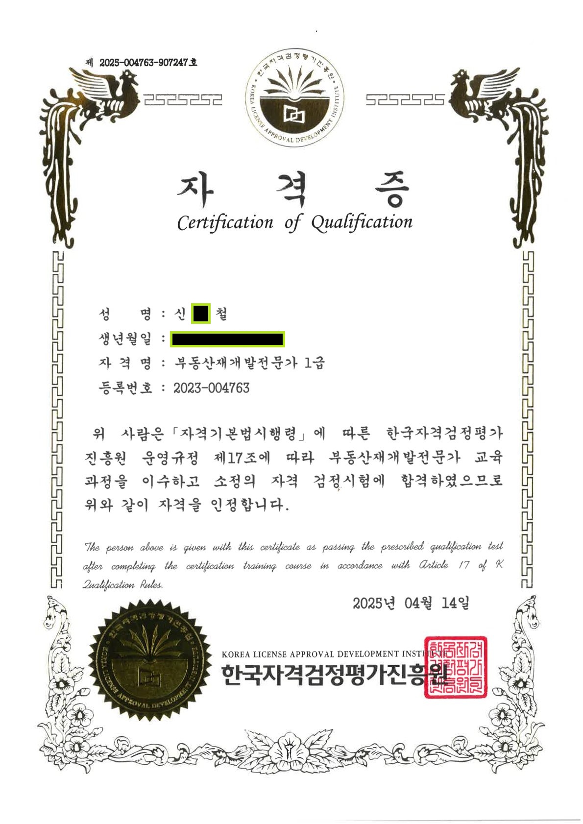 민간자격이 있는지 모르고 있다가 우연한 기회에 접하고 강의 열심히 듣고 편안하게 자격 취득했네요~ 감사합니다 ~~^^