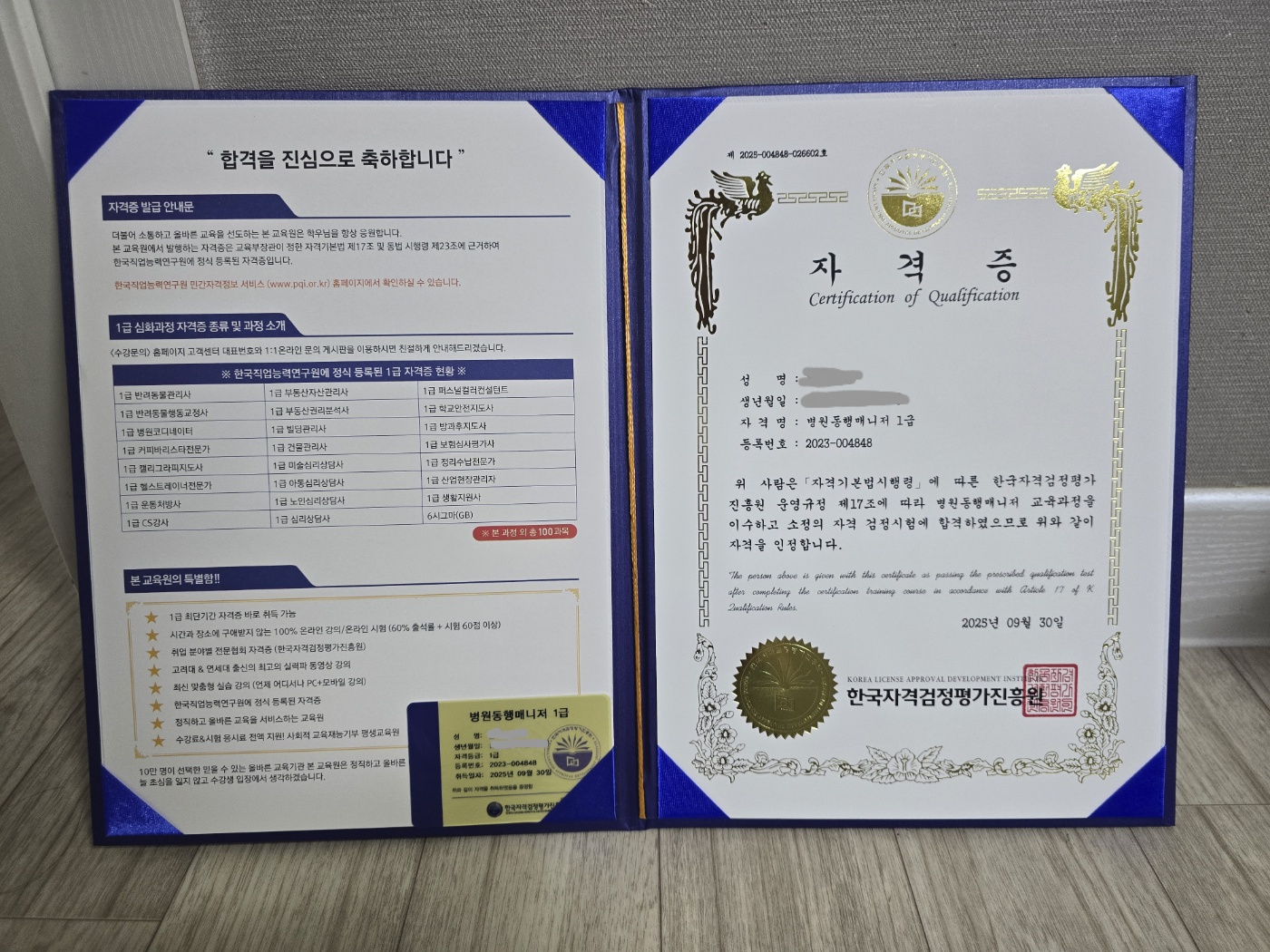 합격후기 작성 시 자격증을 받으신 사진을 같이 첨부해주셔야 합니다.