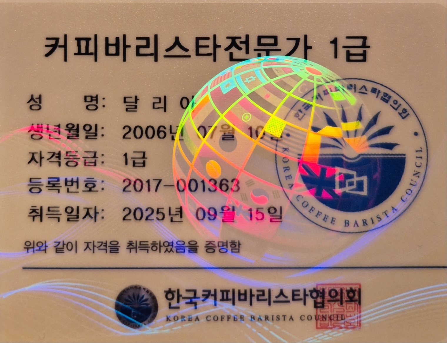 커피바리스타전문가 1급