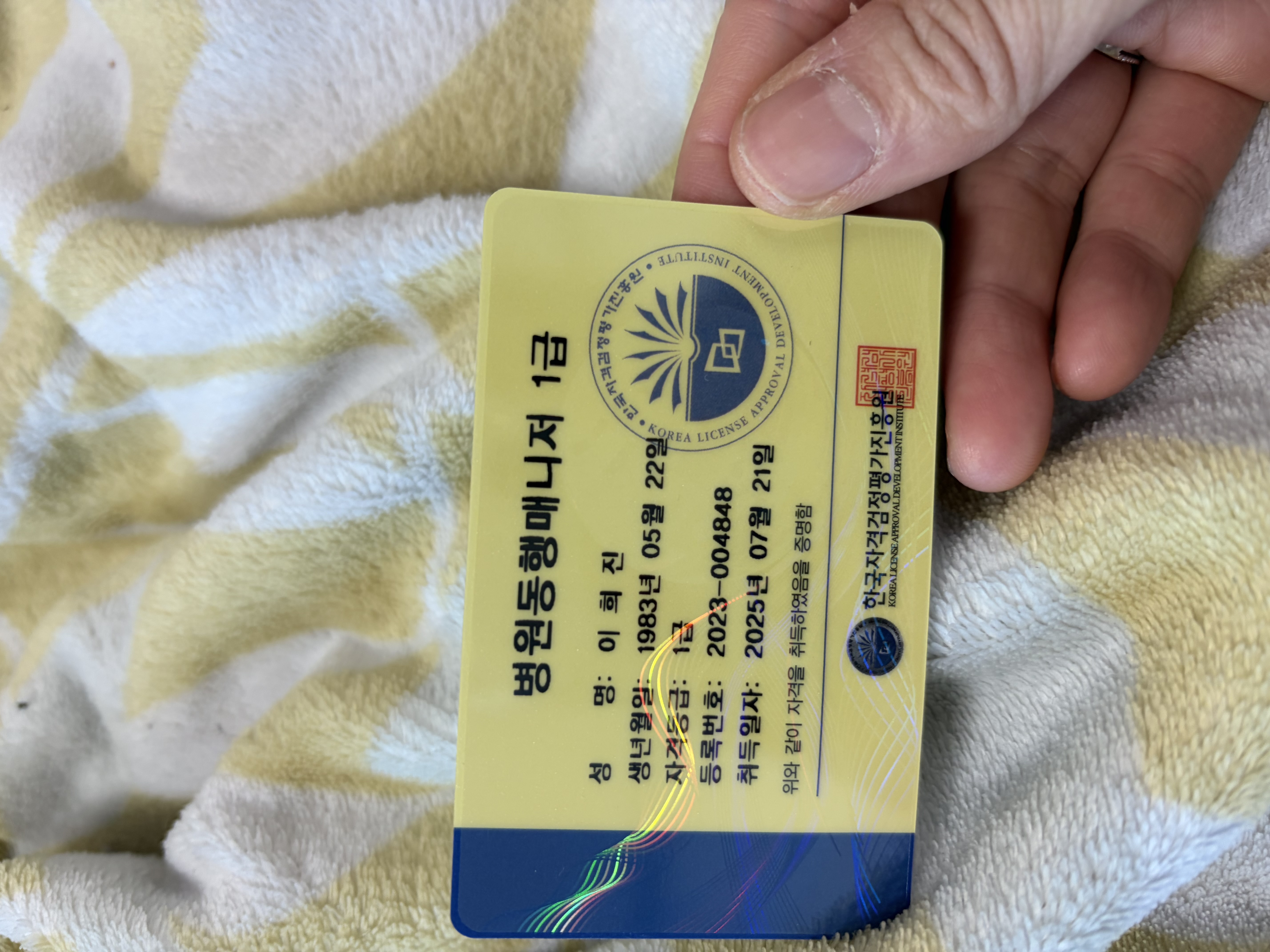 안녕하세요 40대 되고나서 오로지 일만하게 되었는데 우연찮게 자격증취득 할수 있는 경우를 알게되서 걱정도 되면서 설레이기도 하고 하였눈데 나에게 이런 자격증을 취득할수 있다니 꿈만같내요 이 기세로 새로운 자격증을 도전볼까 핮니다..응원해주새요 ㅋ