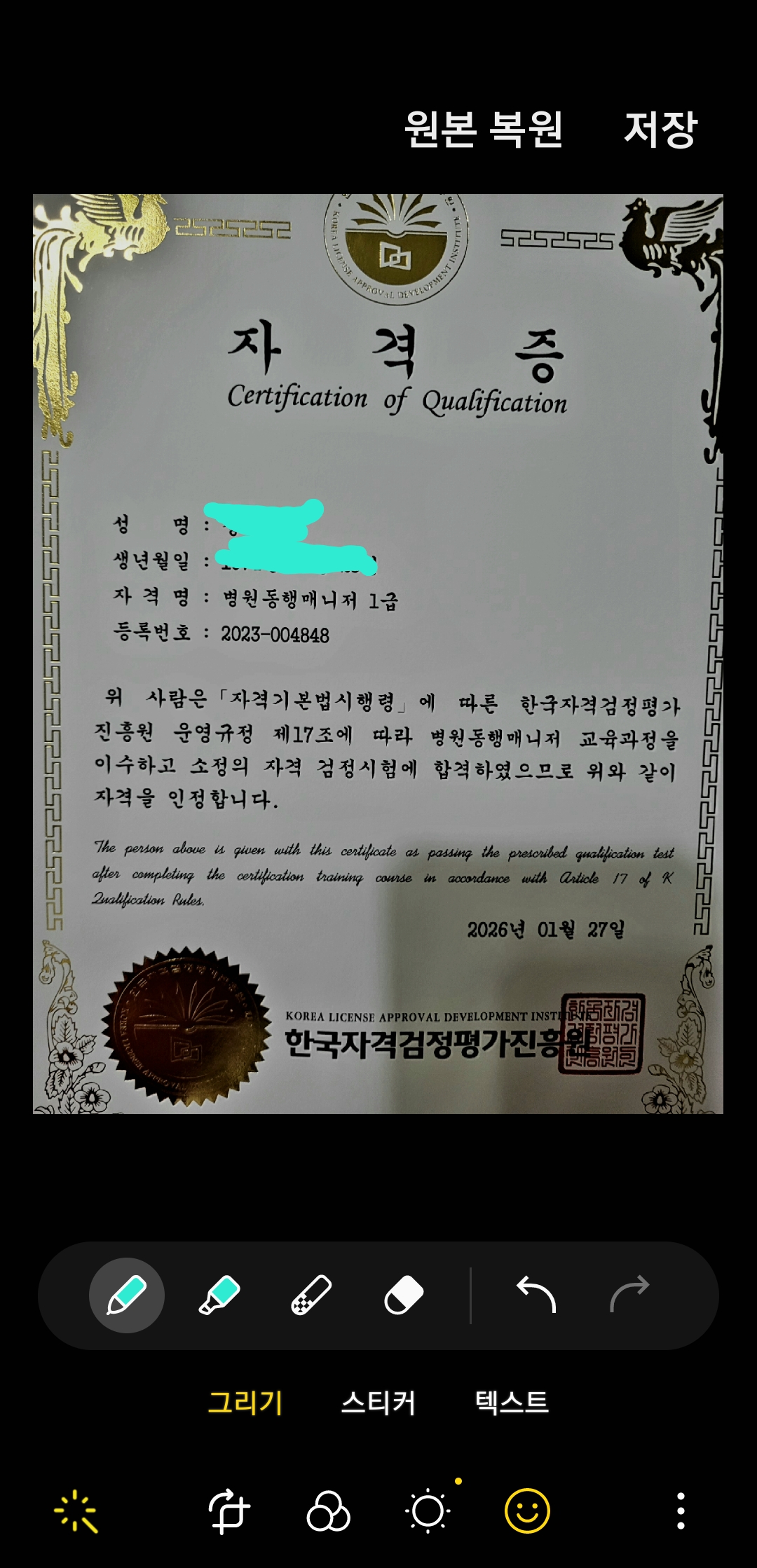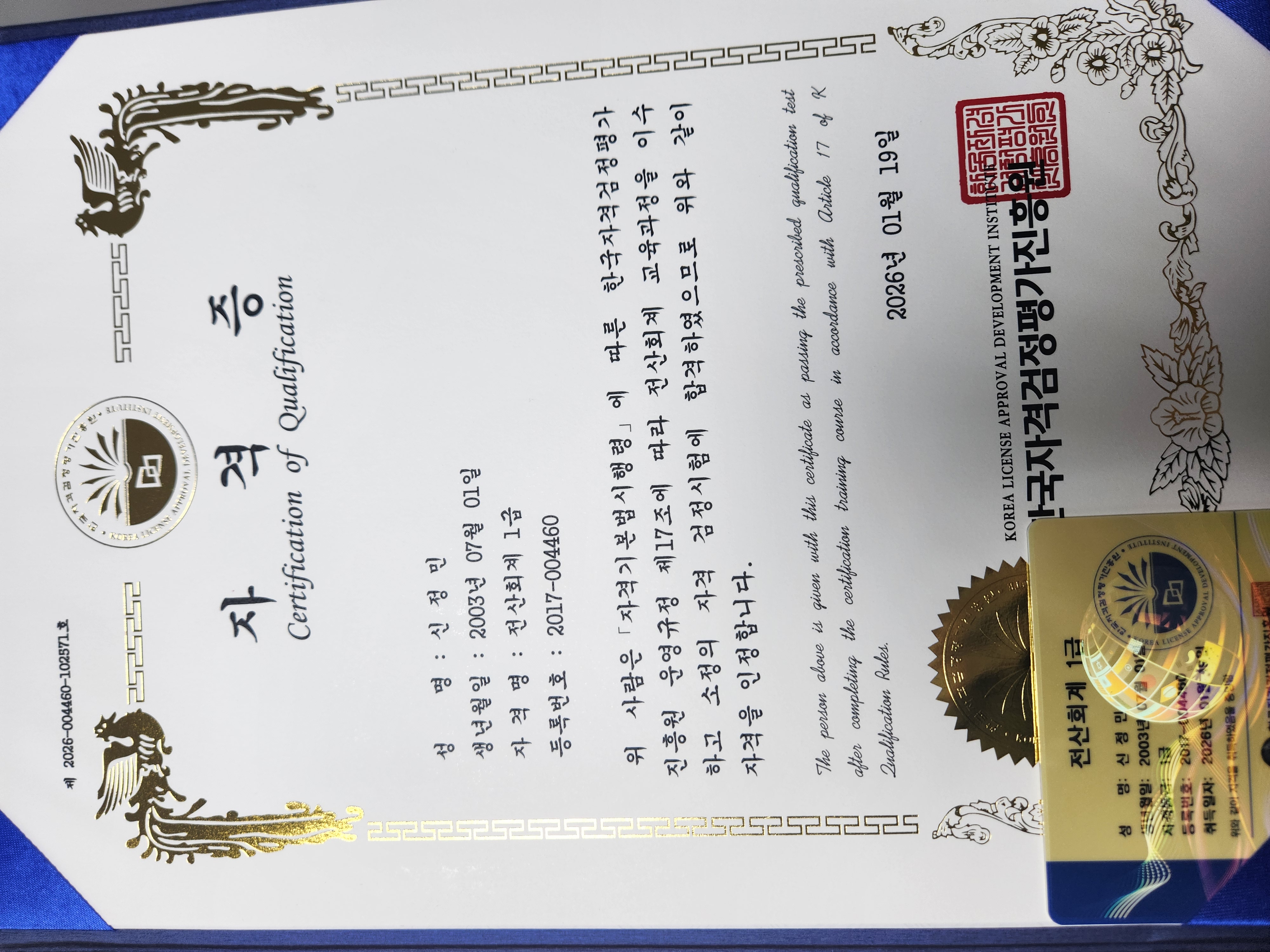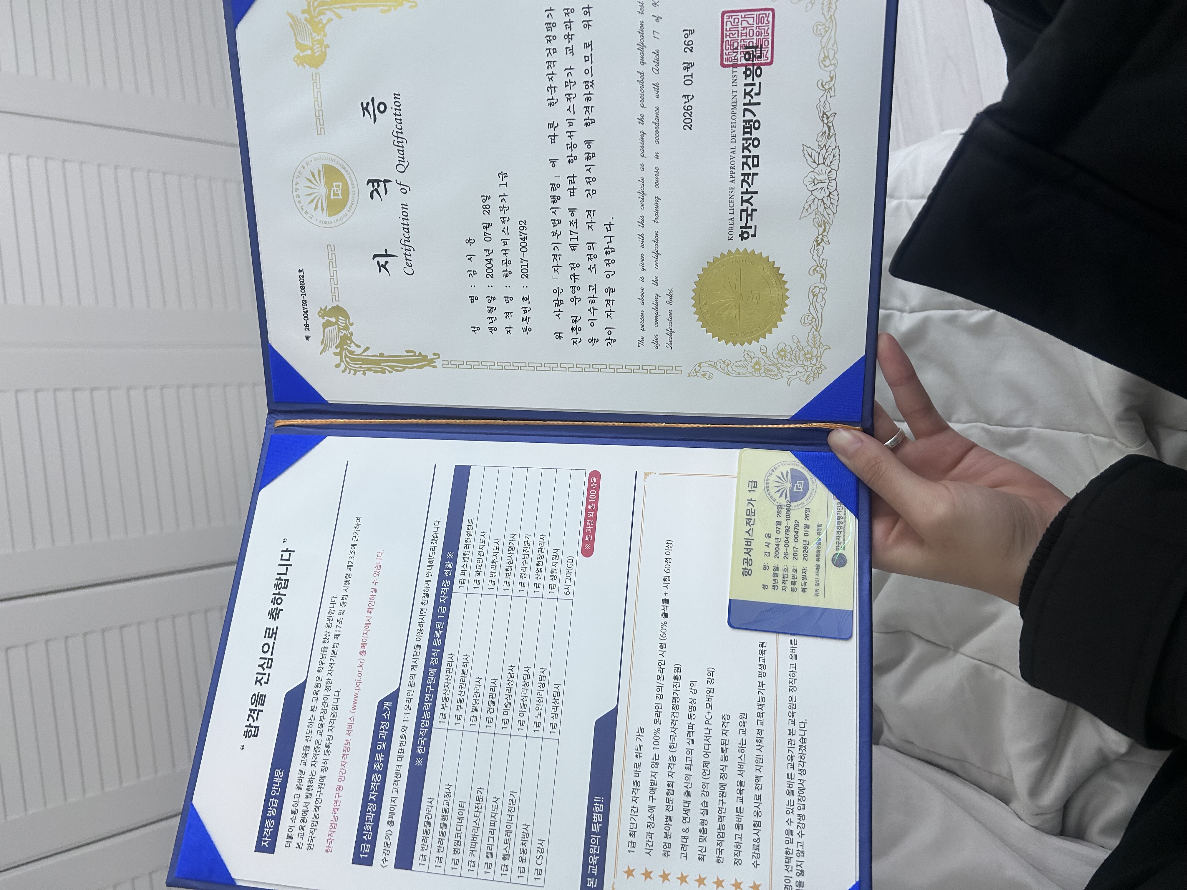 제가 이렇게 자격증을 따게될줄 몰랐습니다. 기쁨마음으로 열심히 해보겠습니다^^