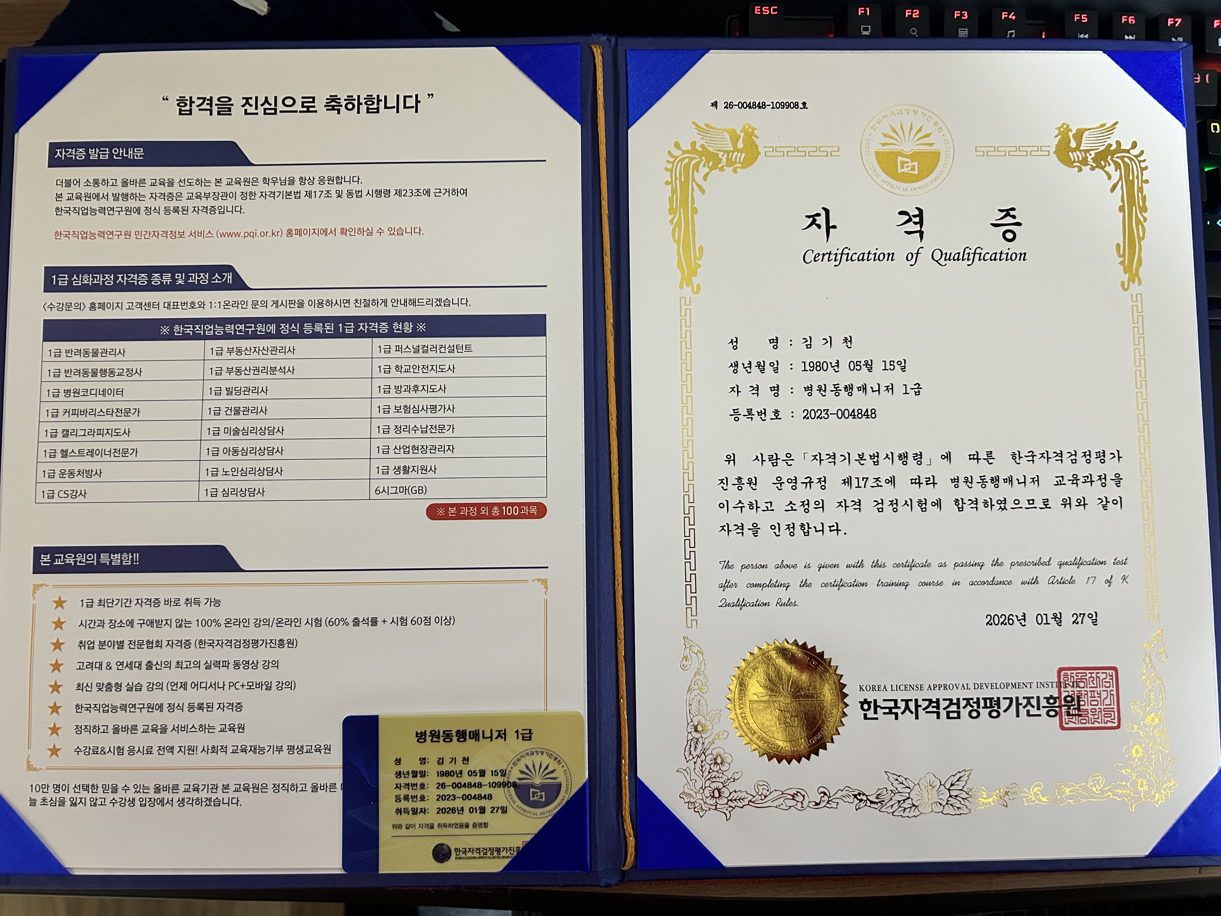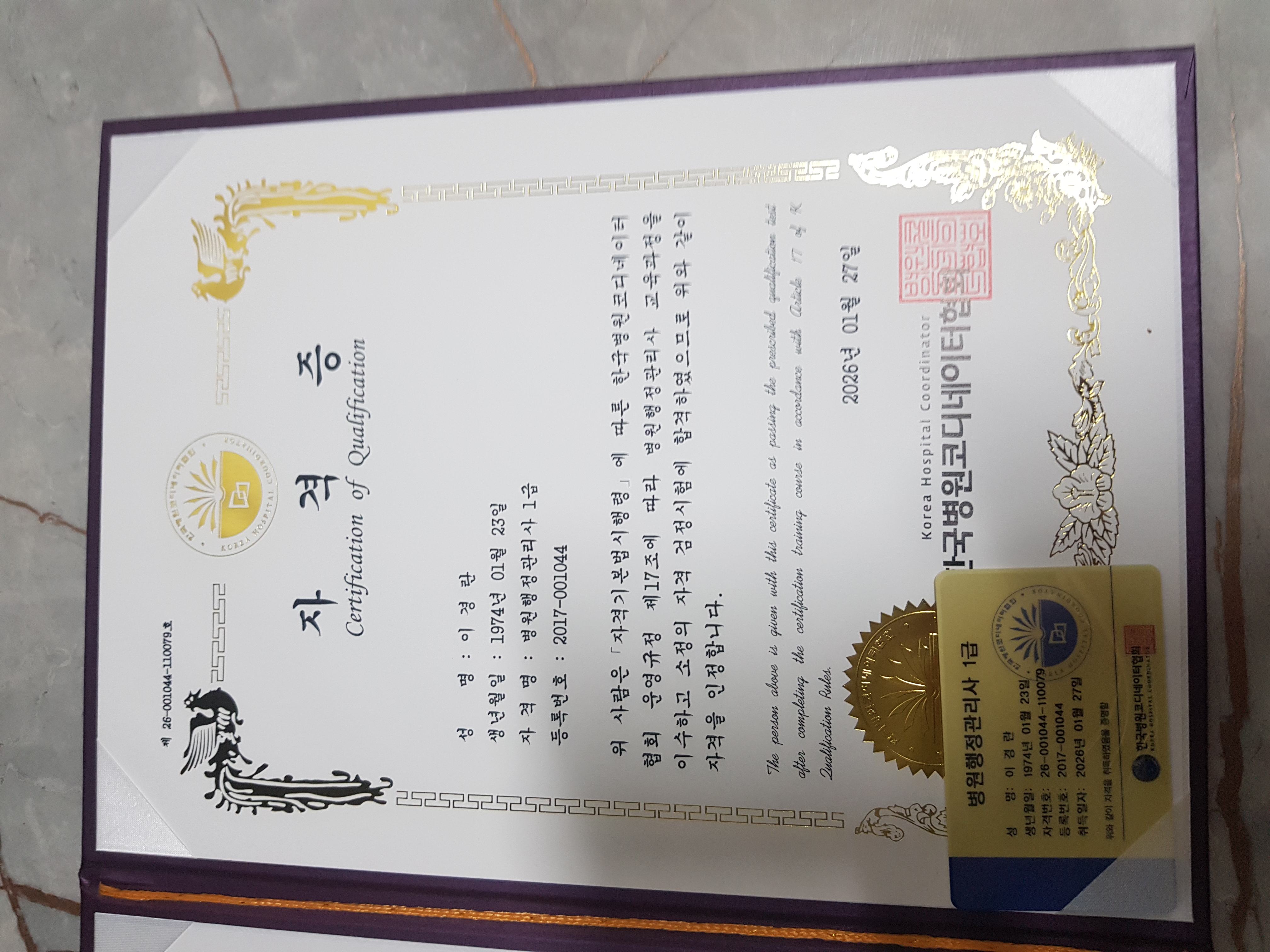 병원코디네이터 자격증 취득하고 바로 병원행정관리사1급도 연달아 합격했어요 도움많이 될것 같습니다
